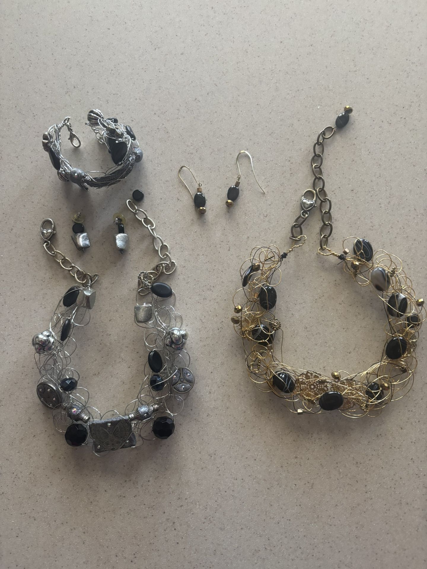....Crafted gold necklace with earrings .... crafted silver necklace, bracelet, and earrings