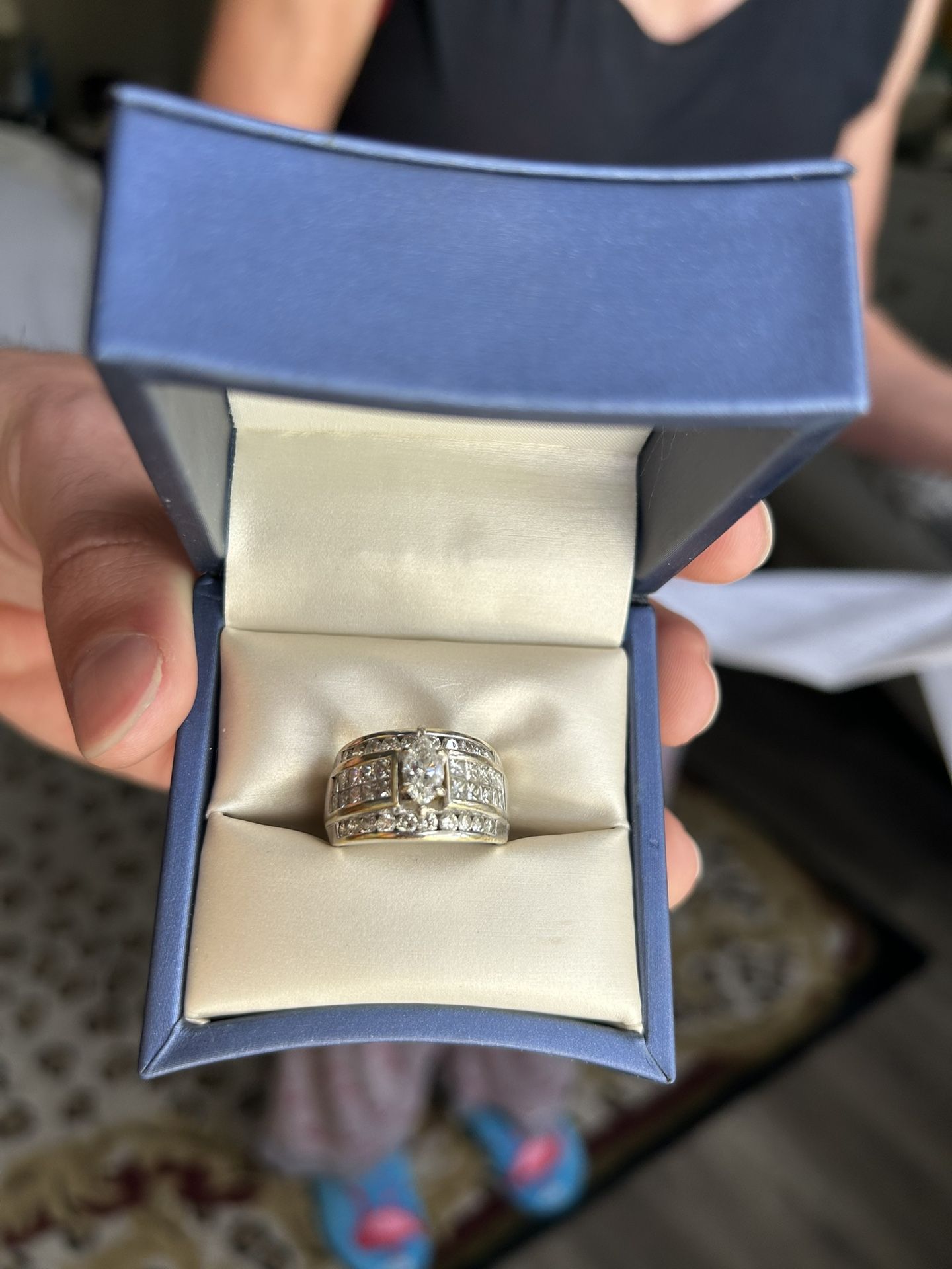 Marquis Rodium Dipped Yellow Gold 18kt Ring with .80 cts Diamond comes with ring box and all certificates taking offers