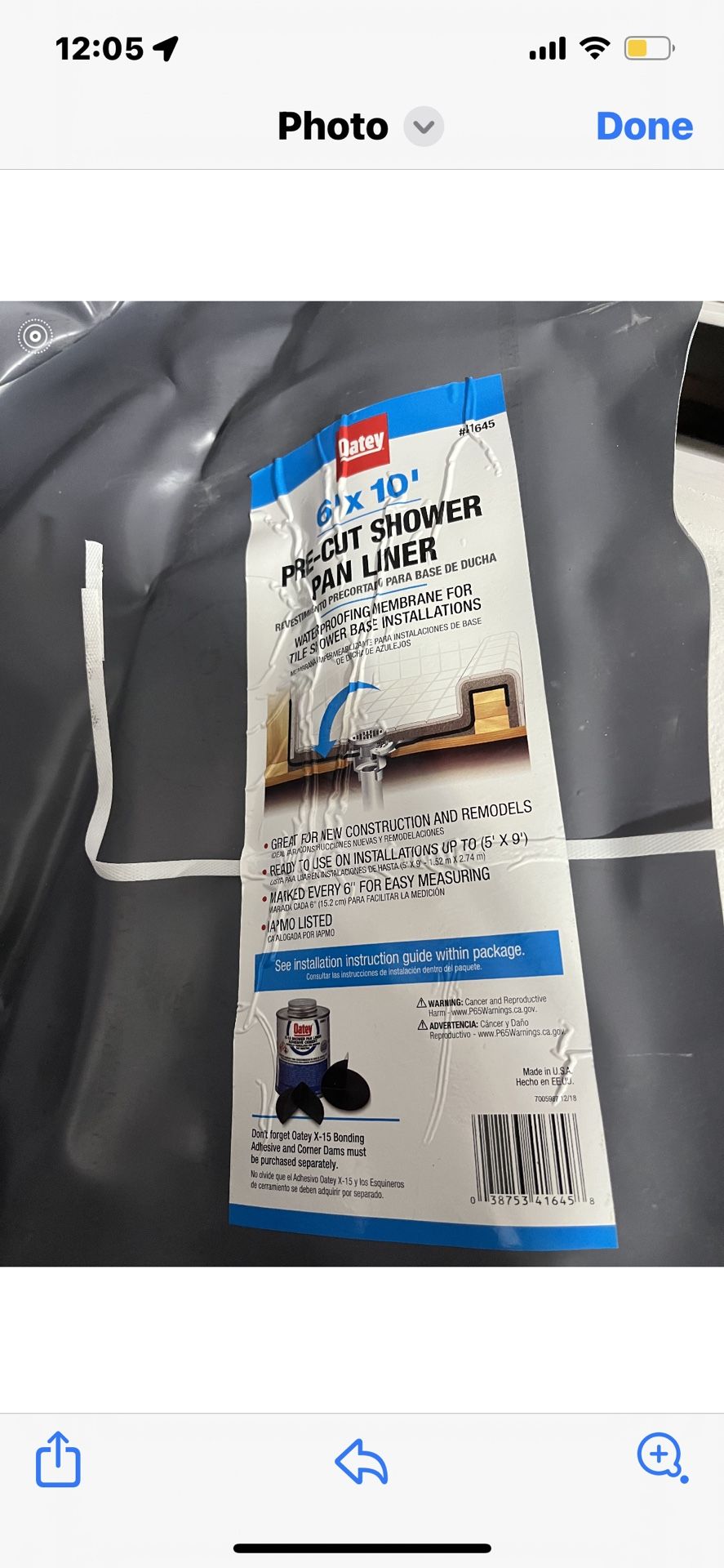 Shower Pan Liner, Brand New
