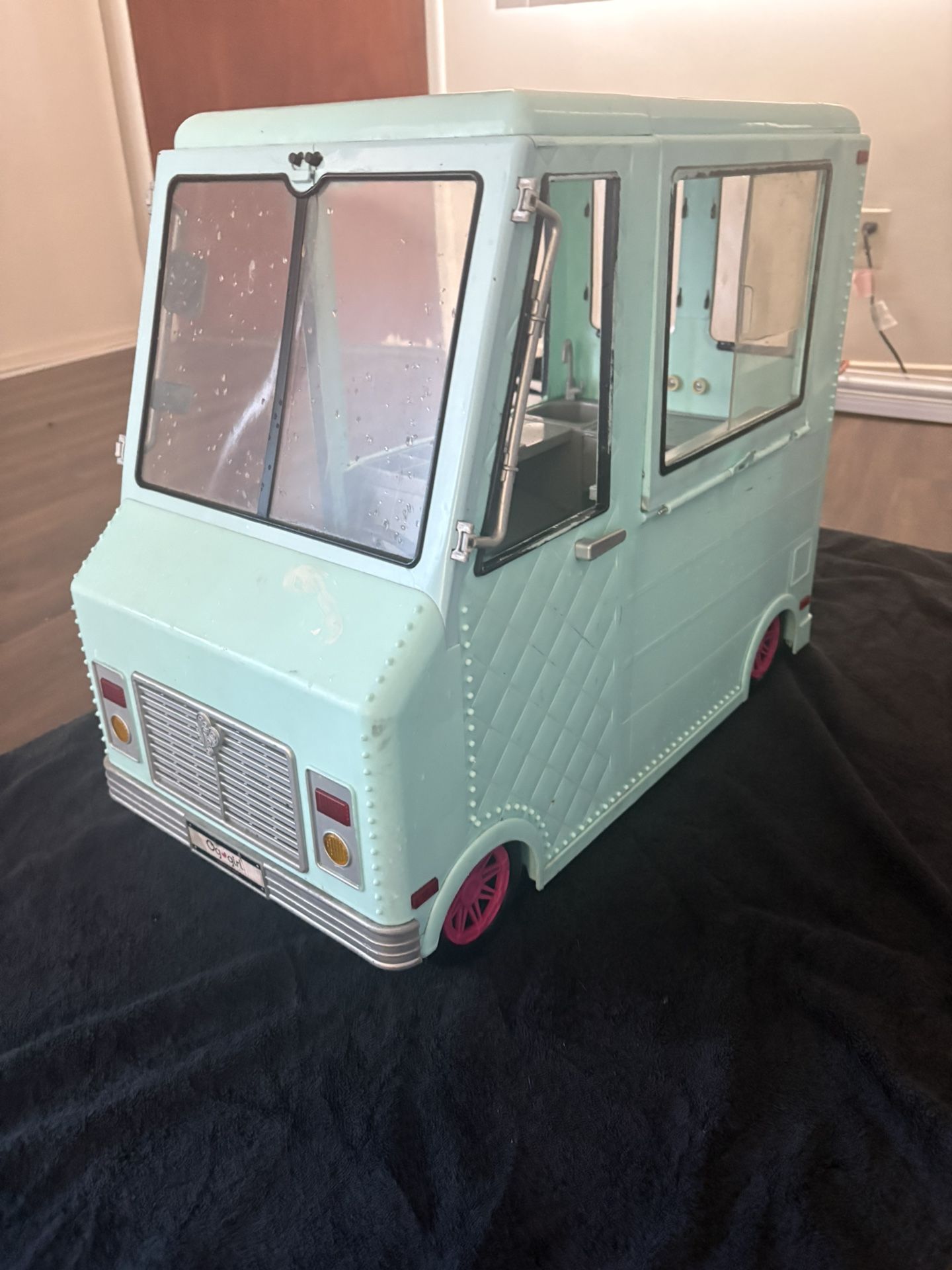 This is an Our Generation Sweet Stop Ice Cream Truck toy vehicle for 18-inch dolls. • Designed for creative play with 18-inch dolls, such as Our Generation or American Girl dolls. Used in ruff shape but still can be used and make someone an art project or toy.