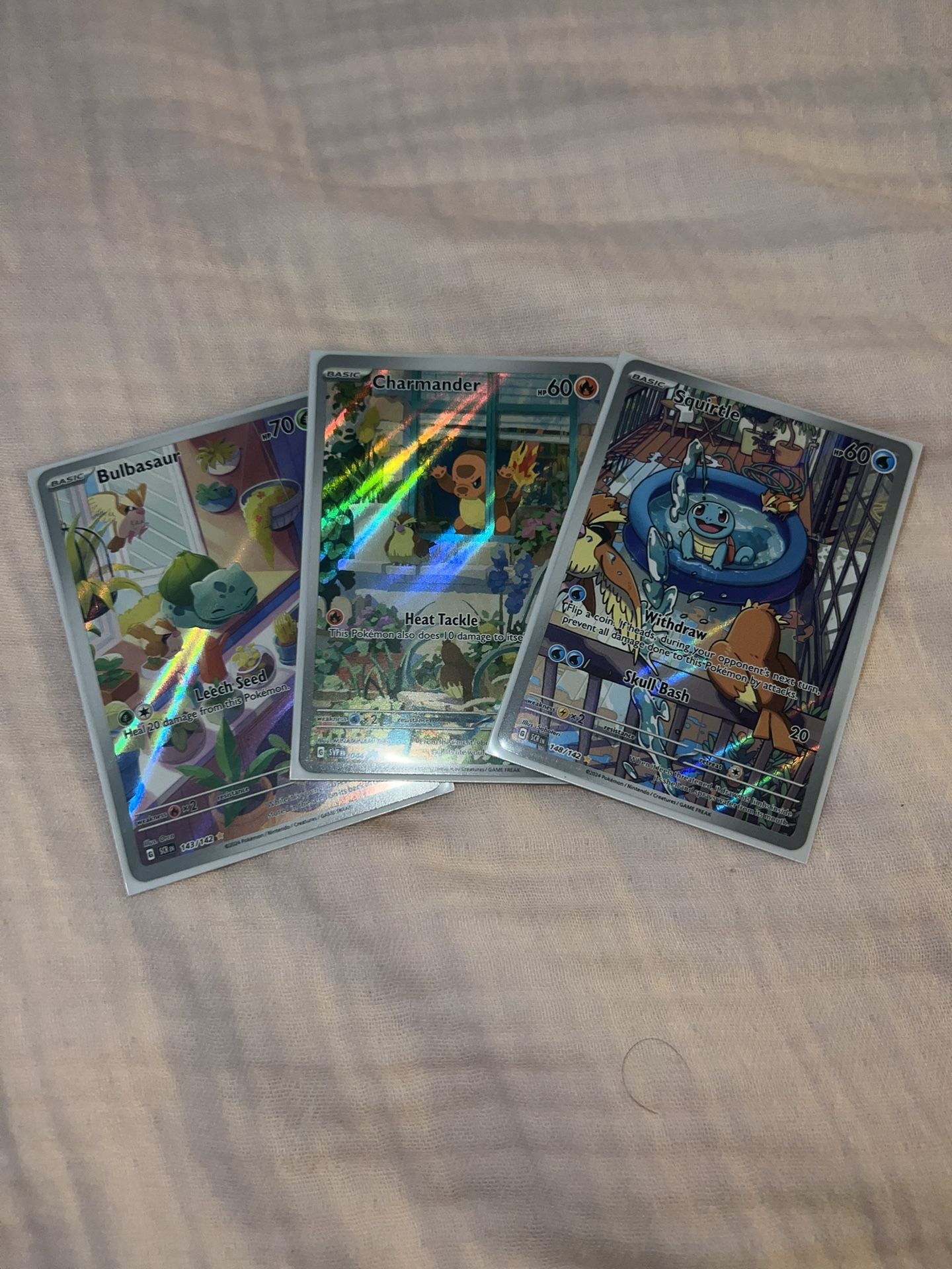 Pokemon Starters Cards Charmander promo Bulbasaur stellar crown (sold) Squirtle stellar crown Want to sell together Ask for price