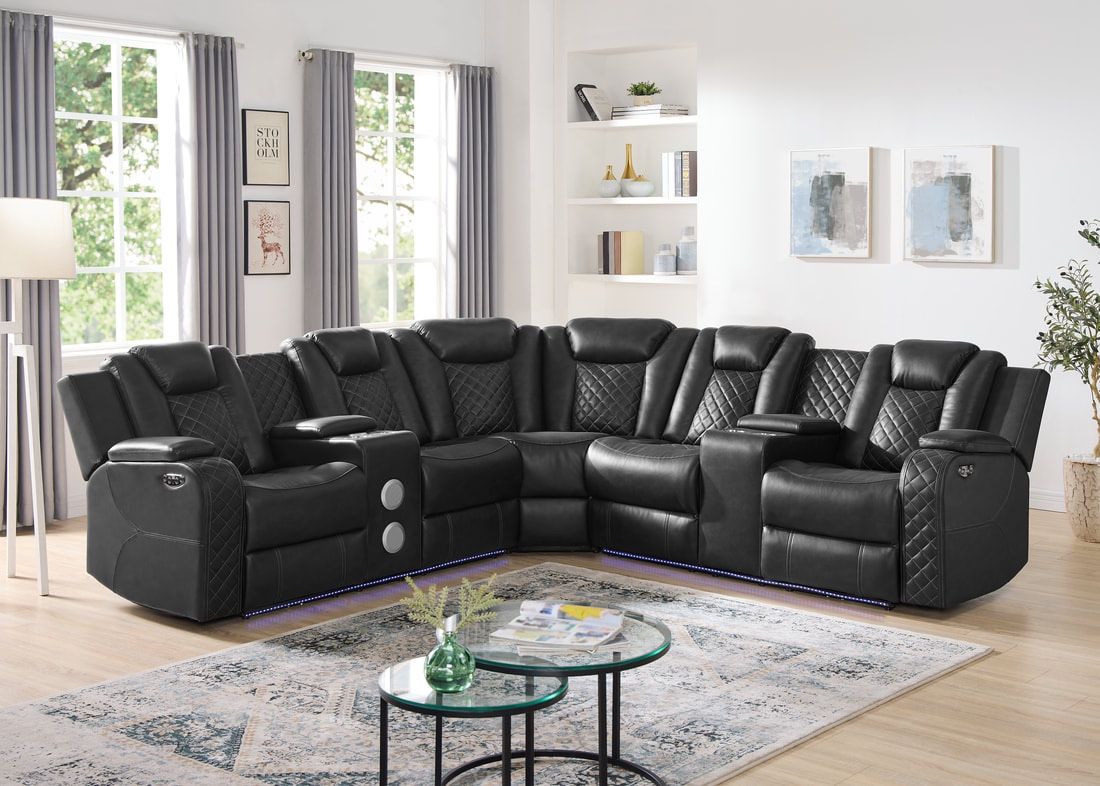 Spaceship Black Power Reclining Sectional Brand New