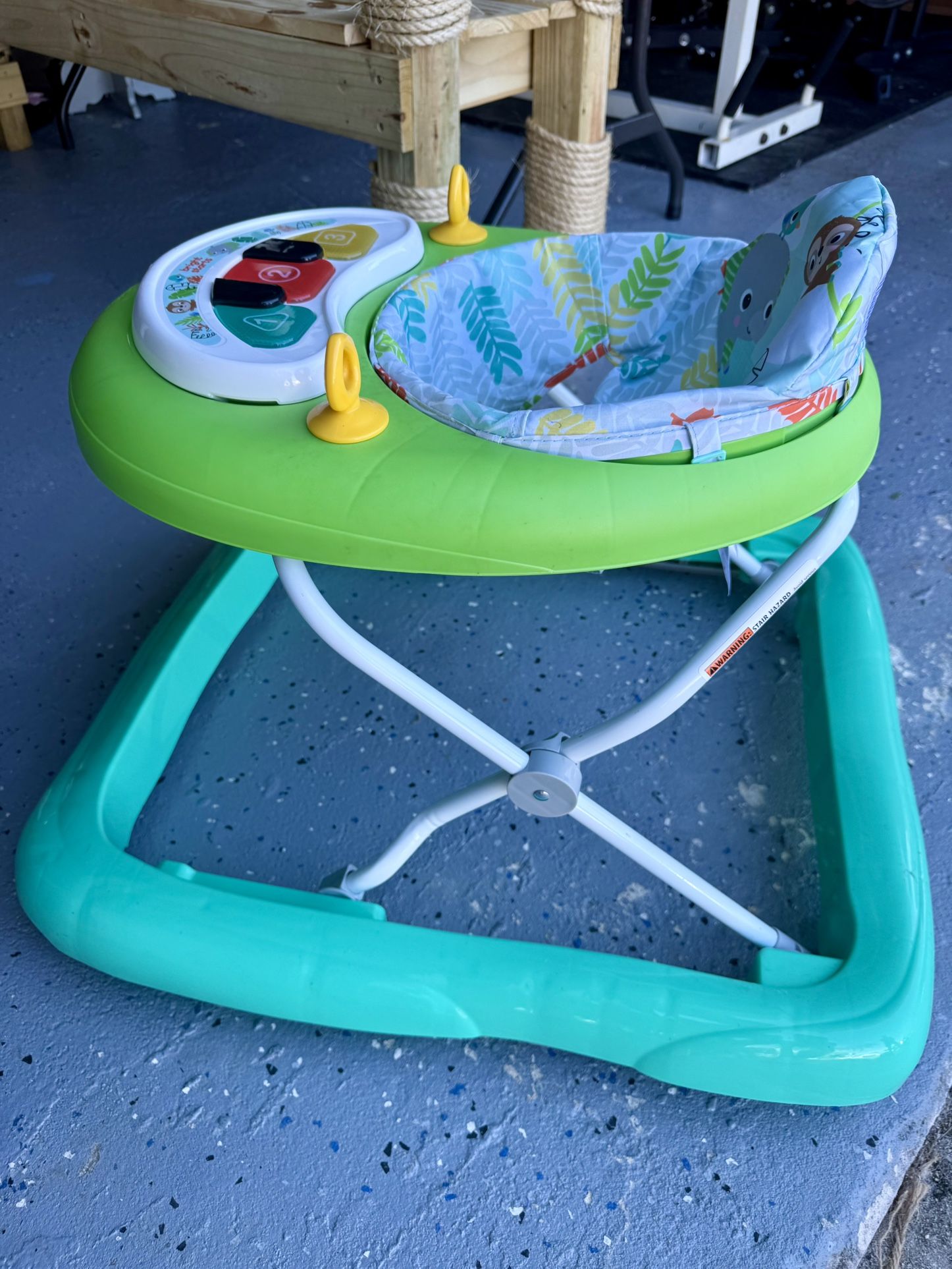 Bright Starts baby walker in great condition. Clean, sturdy, and ready to use. Features an interactive activity tray with lights and sounds, comfortable padded seat, and smooth-rolling base. Folds easily for storage and transport. Used lightly and stored in a smoke-free home. No issues, no missing parts. Perfect for babies who are starting to explore and move around safely. Details: • Brand: Bright Starts • Interactive activity tray • Adjustable height • Folds for storage • Clean and fully functional Pickup: Local pickup only Cash preferred First come, first served – priced to sell fast.