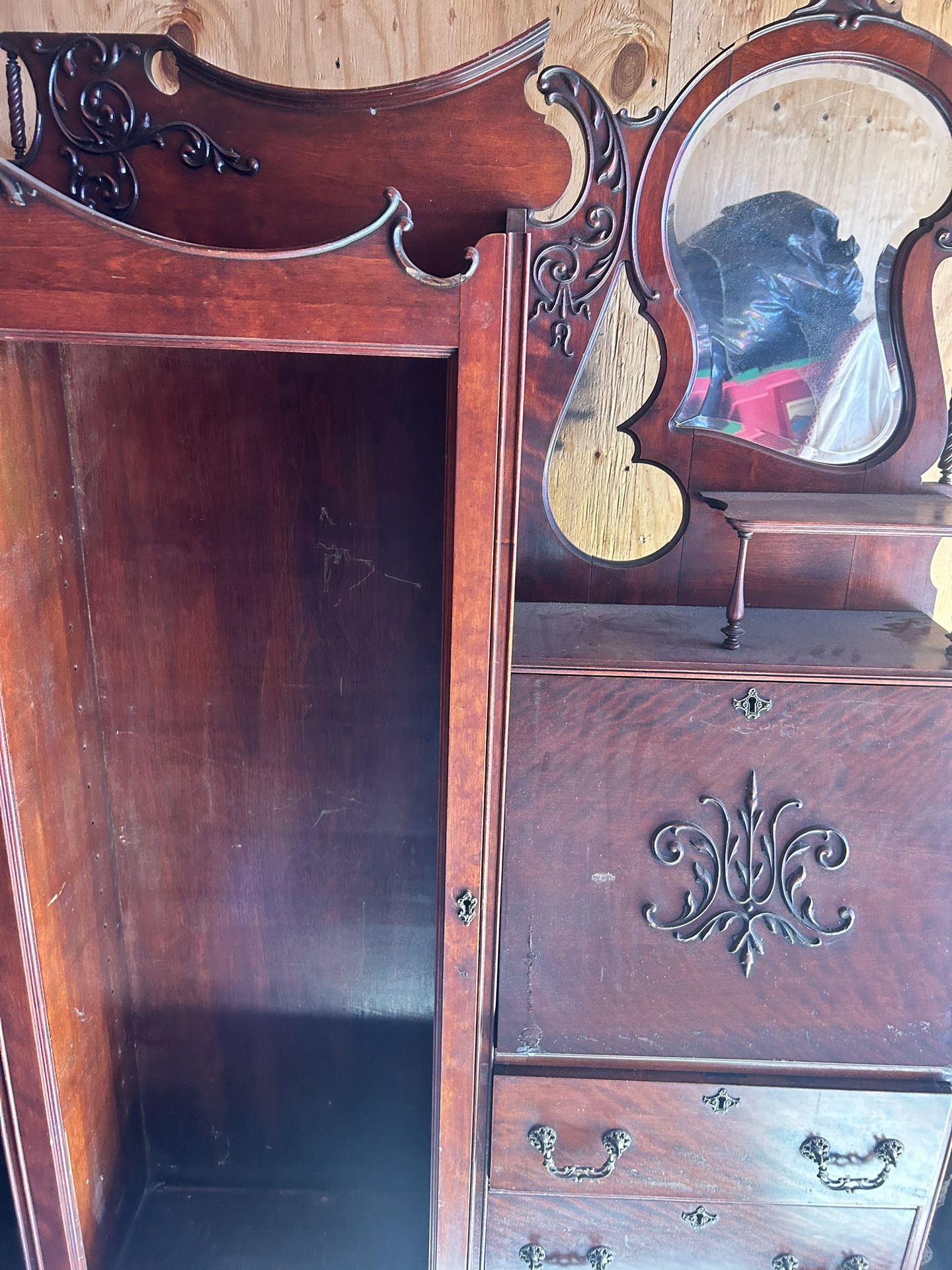 Glass to big door broken, everything else is good. Keys to the drawers are included!!