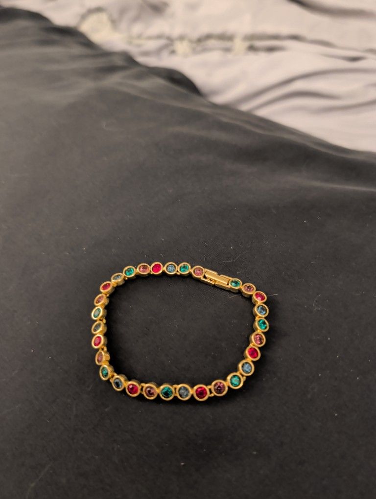 Vintage Rainbow Rhinestone Goldtone Tennis Style Bracelet