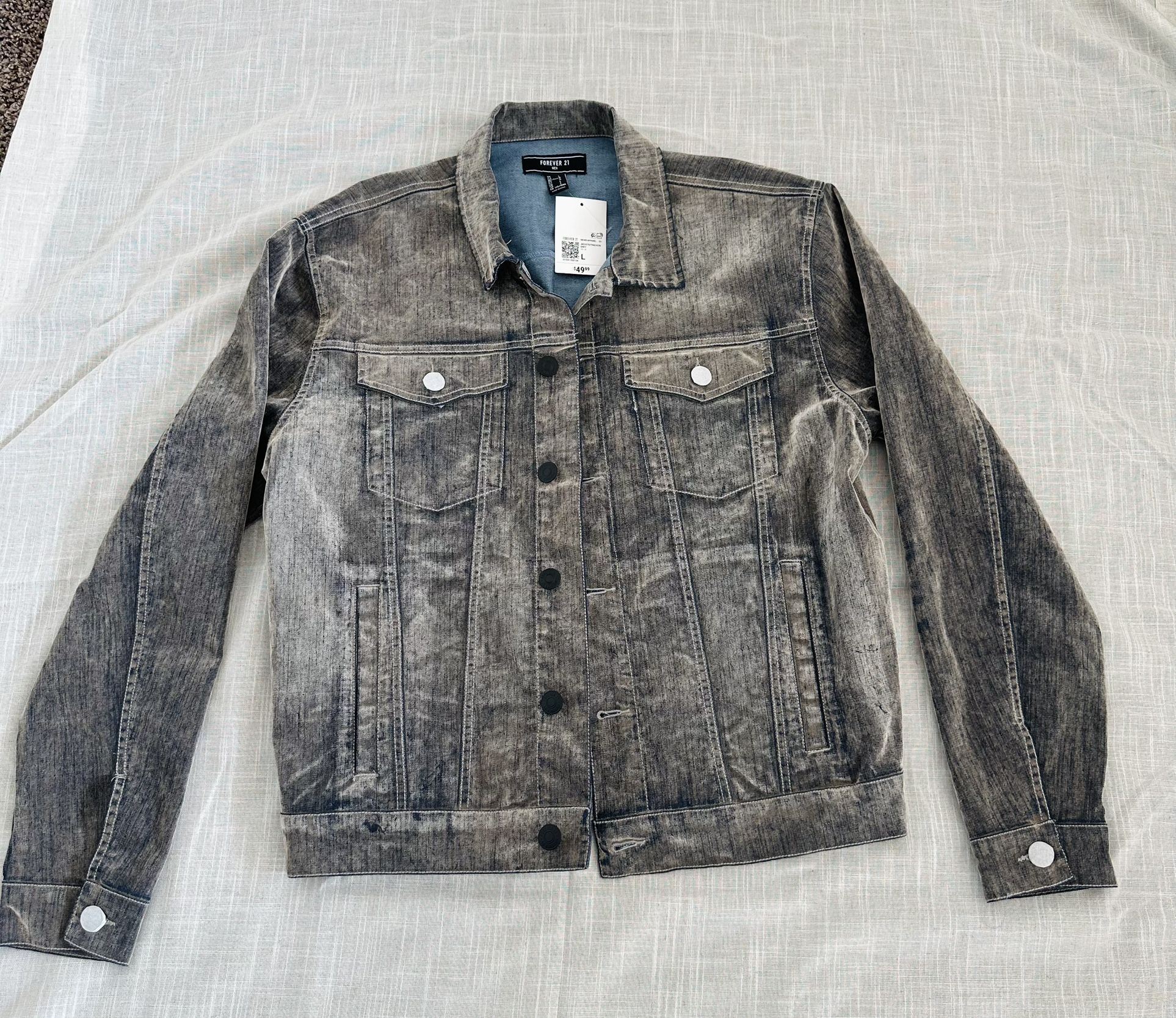 Forever21 men’s jean jacket *BAND NEW never worn *Original tags *I bought this for my husband Color: Grey Size: Large *Pick up from 89148 zip code** *SELL AS IS* PLEASE VIEW ALL PHOTOS FOR YOUR APPROVAL BEFORE PURCHASING AND FEEL FREE TO ASK ME ANY QUESTIONS