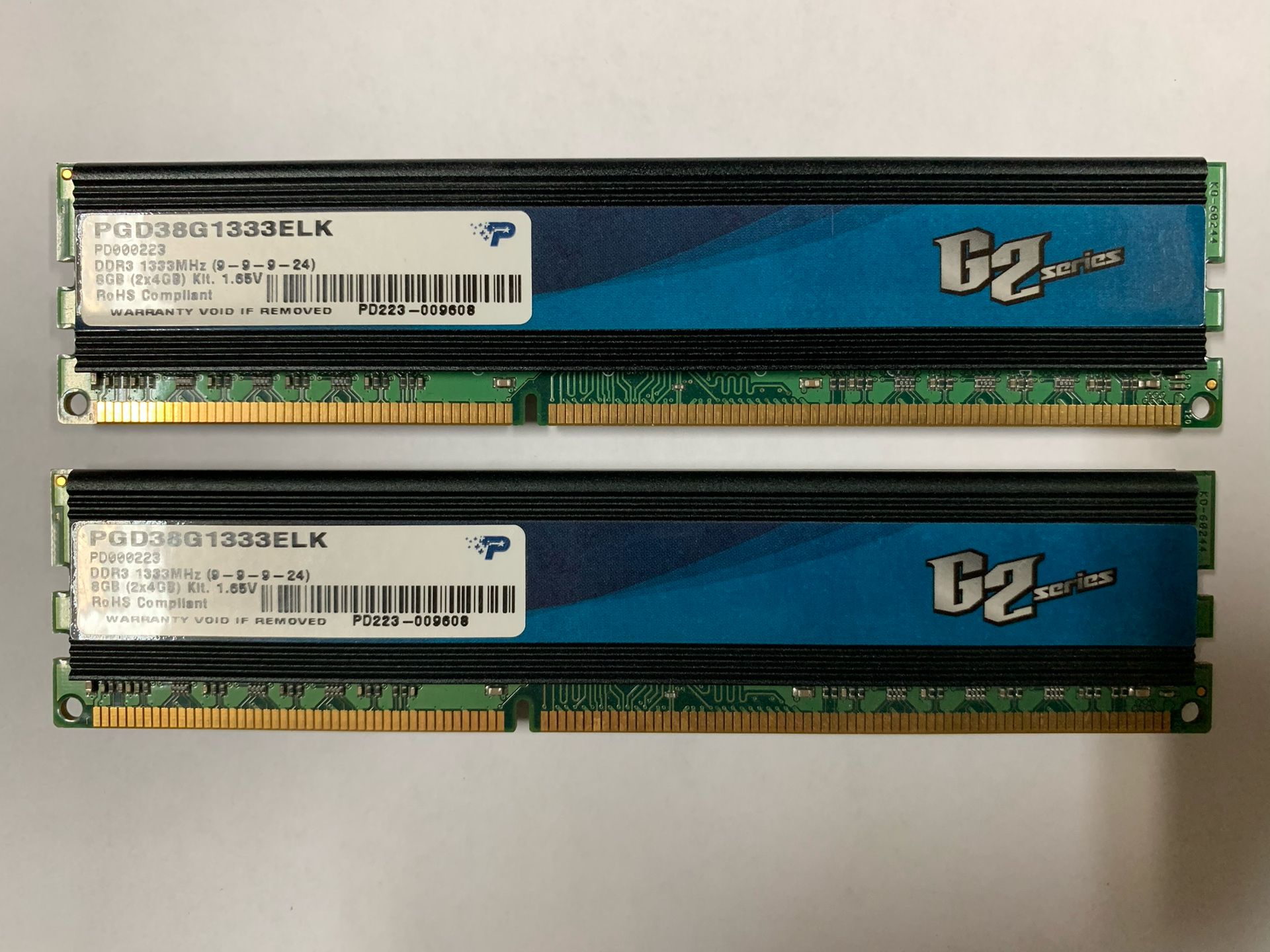 Boost your systems performance with this 8 GB patriot G2 series DDR3 kit featuring two 4GB modules running at 1333 MHz (PC3-10600). These modules are designed for reliability, stability, and smooth multitasking - perfect for breathing new life into older, desktops, gaming rigs or office systems. Both sticks have been tested and verified working and they operate at a standard DDR3 voltage for broad compatibility.