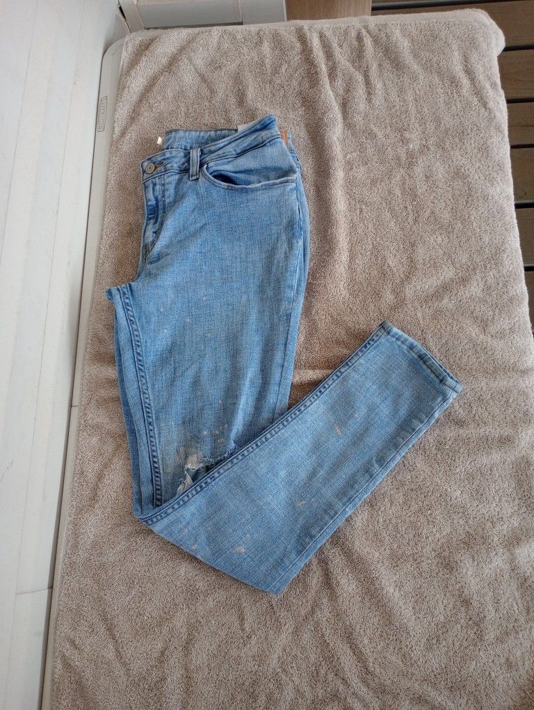 Levis 535 Jeans Womens 31 Super Skinny Low Rise Light Wash Denim W31 L30. In fair condition they have paint stain as you can see in the pictures. See all pictures for more details and measurements.