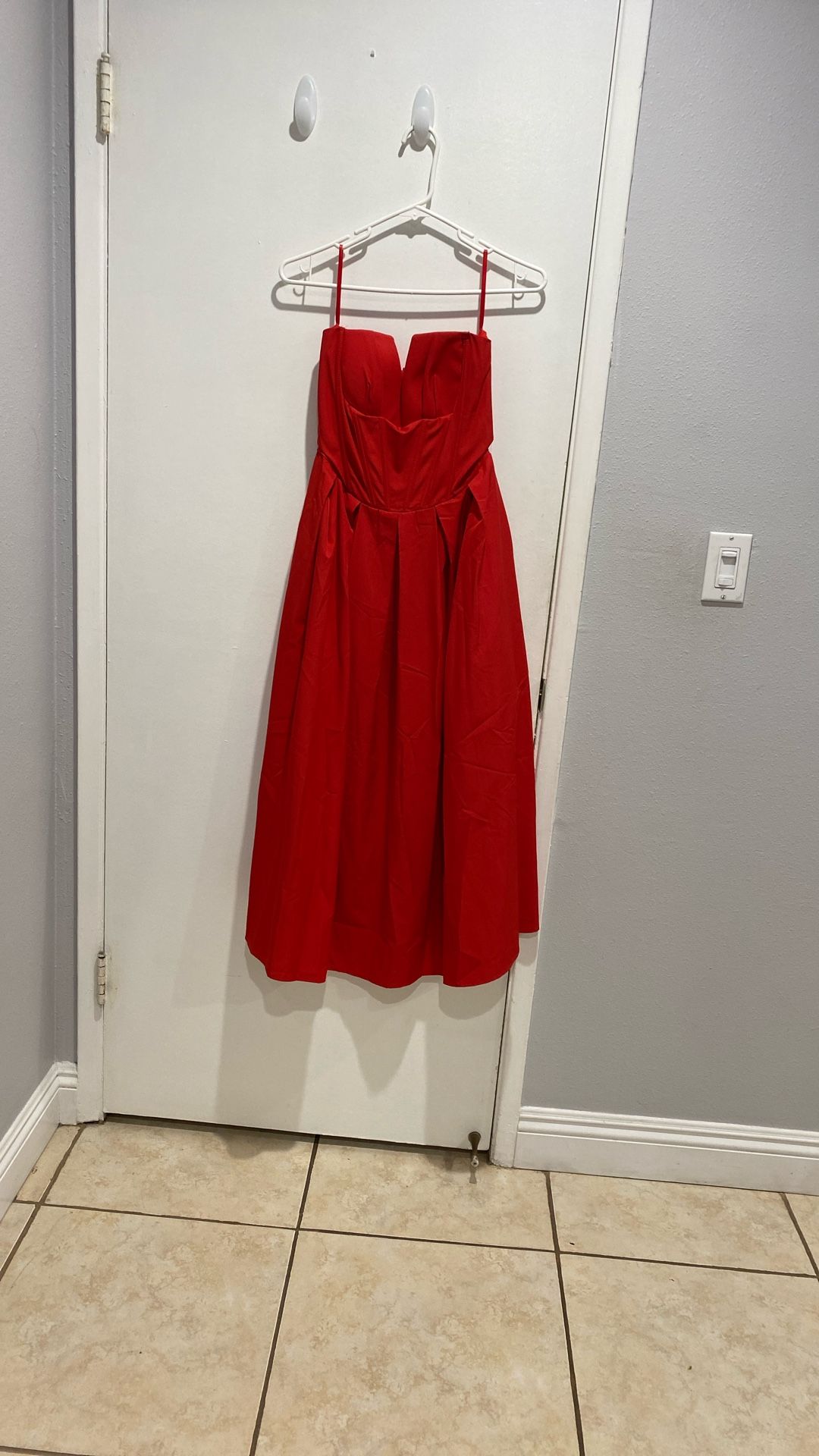 Elegant red strapless dress, size M, with a neckline that flatters your figure. New, perfect for parties, dates, or special events.