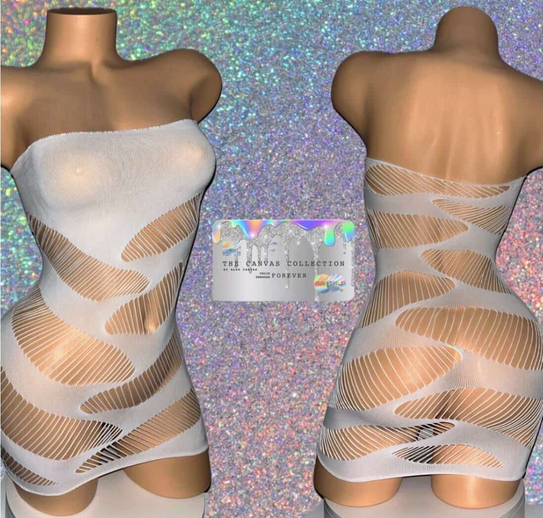 {EXOTIC DANCE/ CLUB/ RAVE WEAR}: WHITE DRESS WITH THONG