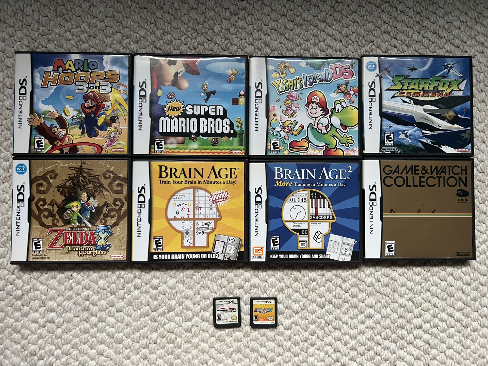 New Super Mario bros. - Sold Yoshi’s Island DS - Sold Mario Hoops 3 on 3 - $20 Starfox Command - Sold Game & watch collection - $50 Mario Party DS - Sold Mario kart DS - $20 The Legend of Zelda Phantom Hourglass - Sold Brain age - $5 Brain age 2 -$5 Super Mario 64 case only - $5 Final fantasy case only - $5