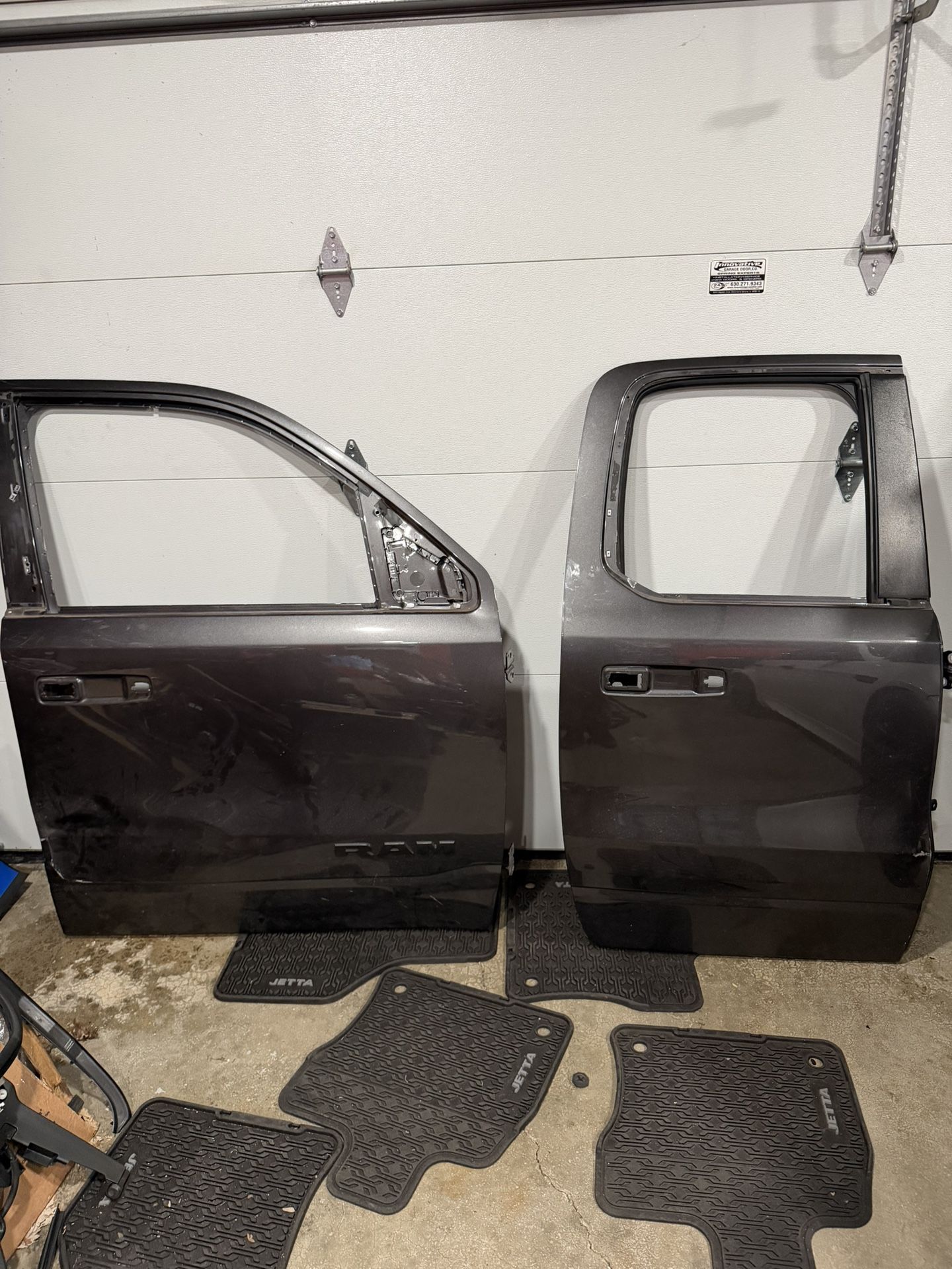 This doors came off of my 2019 Ram 1500 Rebel Quad cab. There is minor damage on both doors. Doors are striped to metal I have the handles if needed. Front glass and rear glass. Rear glass is tinted. O.B.O price