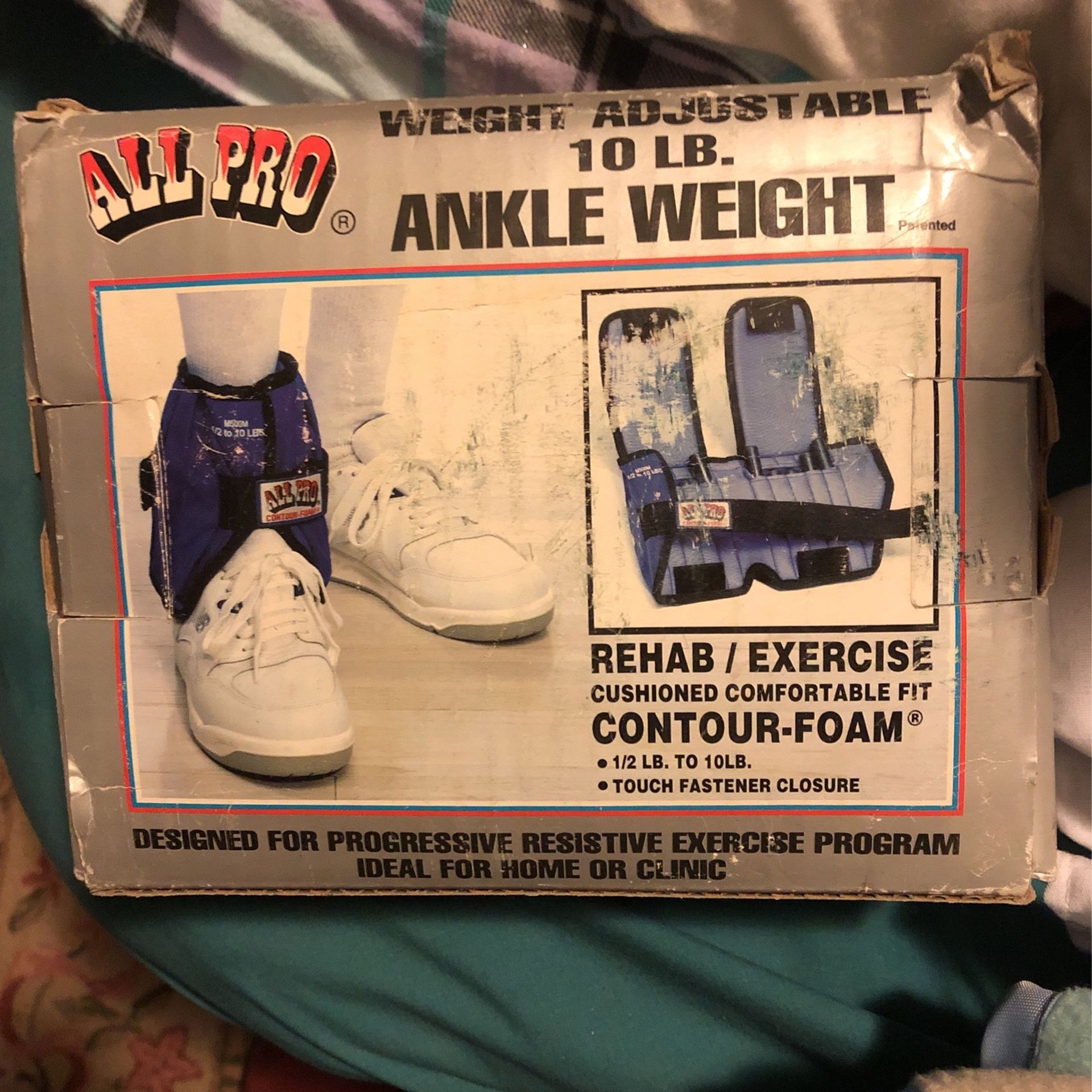 One 10lb adjustable weight, this is a single 10# ankle weight, I have a total of 3 of them. So if you want a “set”, I currently have one set. New in box, box is blemished/ worn. Product is new in the plastic wrap. They currently sell for $69-$78 each. I will accept $50 for ONE set as available