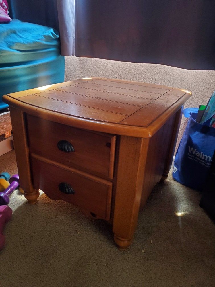 I have a side table/night stand it's length is 27in by 22in deep hight 19 1/2 in real wood so ot is heavy asking 20 obo need gone moving soon. You pick up. Thank you