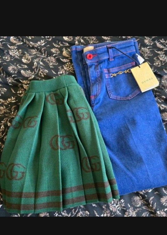 Selling both for $250 These are authentic Gucci k Jeans and skirt Children's Size 8 You are getting a super deal for both itmes at my price. The Jeans by itself were $260 and the skirt was $600 you have yo jump on this deal immediately. The skirt was used once but in perfect condition and the Jeans are new with tags.