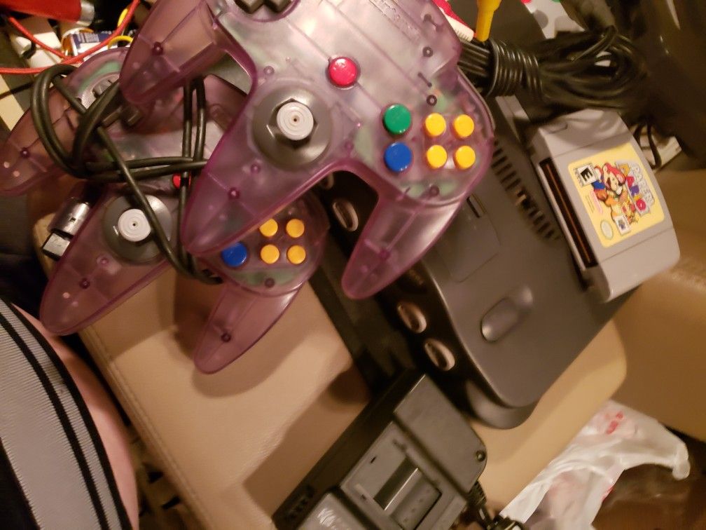 Nintendo 64 bundle, console with paper mario, 2 controllers, cords In great condition Everything cleaned tested and working perfectly all Authentic Nintendo brand.