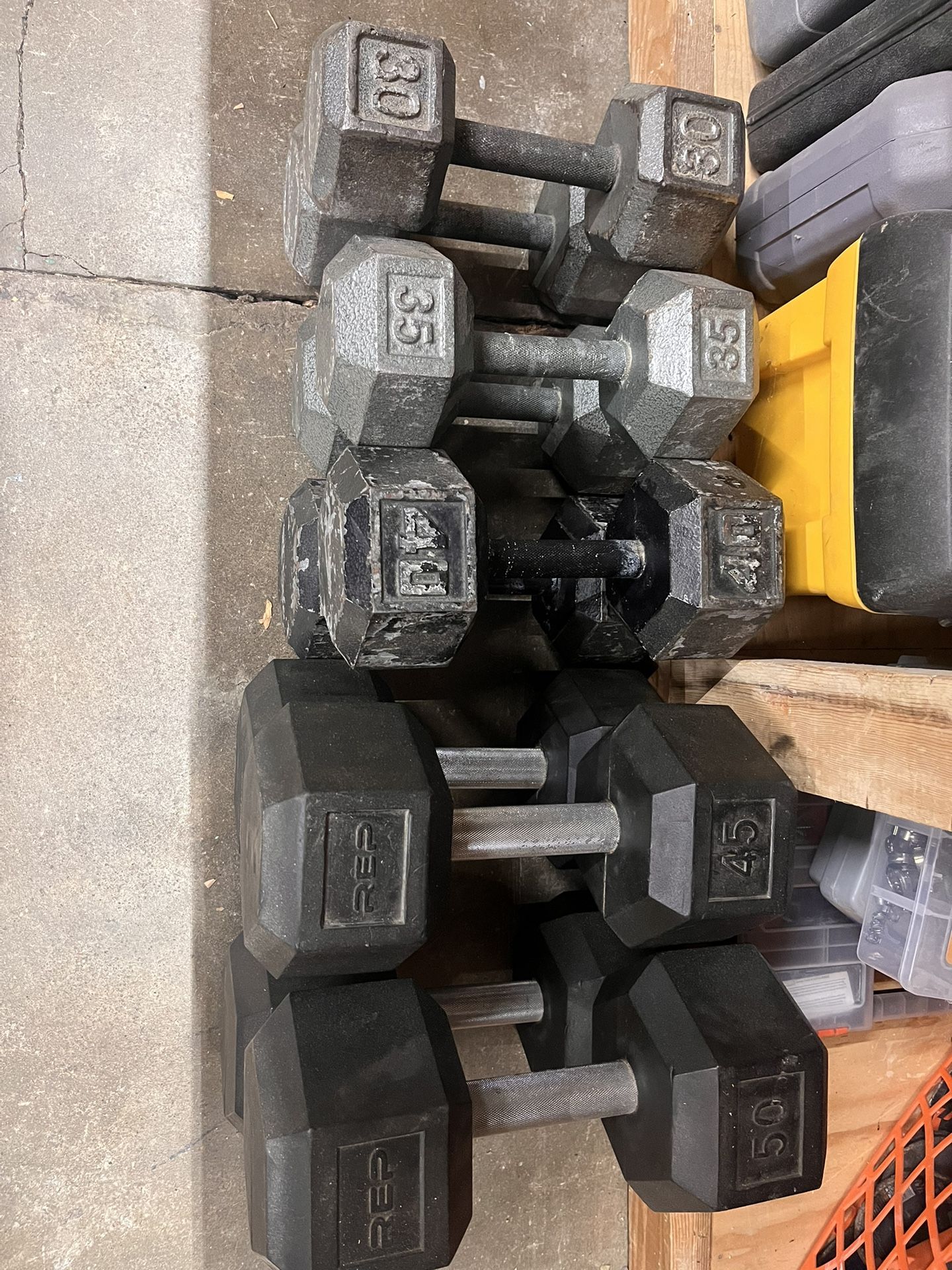 Dumbbells for Sale — 30 lb and 50 lb Pairs — $1.50/lb (Rubber Hex & Metal Hex) DBs are sold in pairs so 30 lb set equals 60 lbs All are in good condition and stored indoors Pricing: • $1.50 per pound • Willing to sell individual pairs or multiple sets Notes: • Rubber hex dumbbells have minimal wear • All pairs will be cleaned before sale • Great for home gyms, garages, or adding weight to your existing setup Pickup: • Local pickup only • Cash or Venmo preferred If you're building a home gym or adding to your current setup, these are high-quality, durable dumbbells at a fair price. Message me for what you’re looking for!