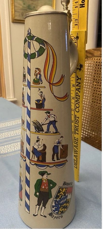 VTG 15" Corzelius Hand painted Maypole Bavarian German Beer Stein
