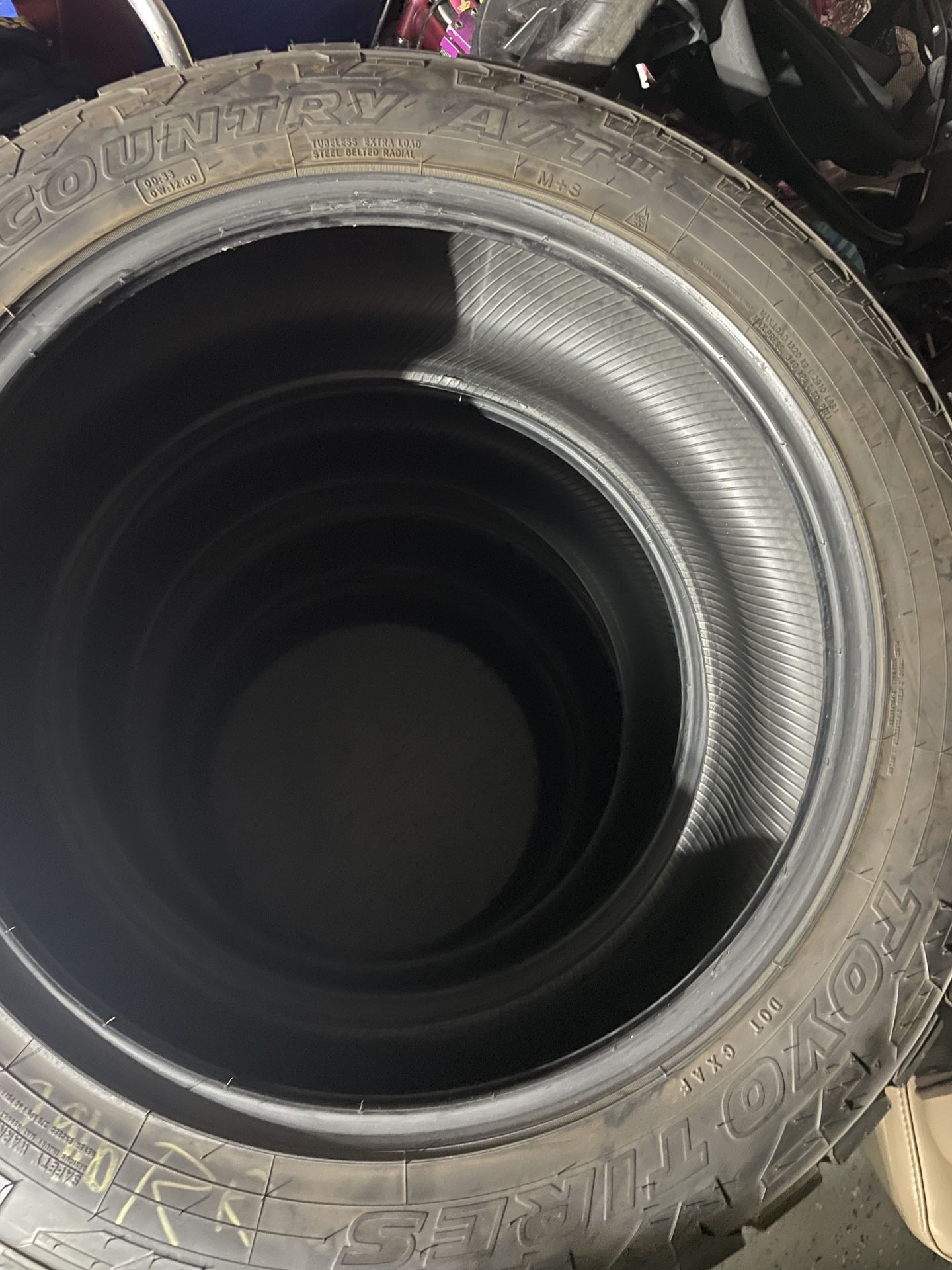 33’s (305/45R22) 3 x tires only- almost new (I had a blowout on one this is why only 3) You will pay $550 plus per tire- make a reasonable offer. Toyo Open Country A/T III Manufacture date of 0723 Even wear among the three. 12/32nds currently came with 13.9/32 nds new see last pic