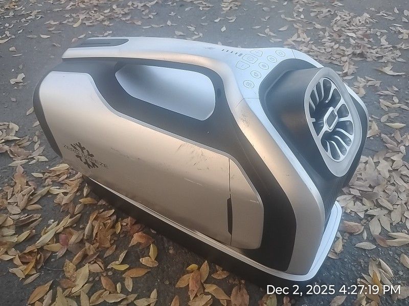 This is a small, portable air conditioner powered by a high-capacity lithium battery or 120V. This unit uses a miniturized compressor to cool in the same way as the AC in your house or car, only smaller and with less power. Capable of a surprising amount of power this way. Light use. It does have some minor cosmetic wear, but mostly from sharing space with other items on my garage shelf. Comes with the remote, charger, one high capacity lithium battery and a vent tube. I probably have the other vent tube, but need to search. Works great. From the AI: The Zero Breeze Mark 2 Portable Air Conditioner is a versatile and energy-efficient cooling solution suitable for both indoor and outdoor use. With four cool speeds and a direct cooling system, this portable compressor air conditioner effectively cools small spaces such as rooms or outdoor areas up to 250 square feet. It operates on included lithium battery at 24V or included 120V adapter, making it convenient for use anywhere. The remote control allows for easy adjustment of settings, and features like auto shut-off, quiet operation, and eco-friendliness make it a convenient and environmentally conscious choice for staying cool on-the-go.