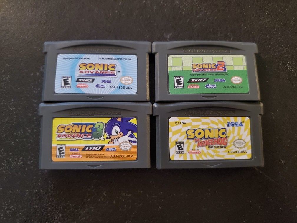 Shipping only GBA non oem, Sonic video game cartridge collection! 1. Sonic Advance 1 2. Sonic Advance 2 3. Sonic Advance 3 4. Sonic The Hedgehog Genesis I have GBA, GBC, and Nintendo DS games for sale that I could bundle together so you only have to pay shipping once. Let me know if you're interested. Thanks for checking out my listing.