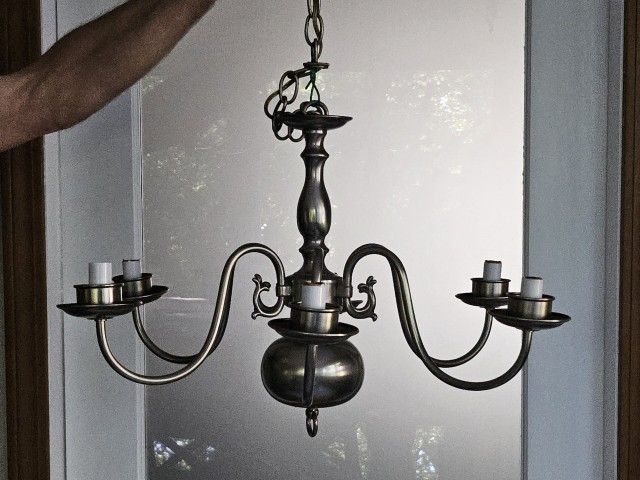 Really Nice pewter chandelier includes all of the hurricane globe attachments