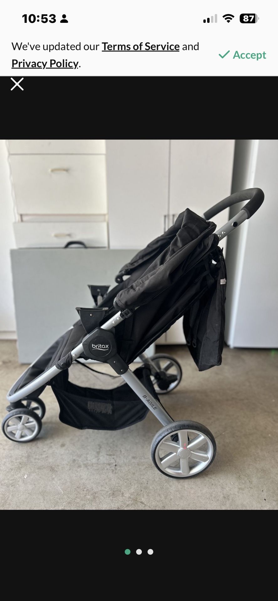 3 wheel run or walking stroller, barely used.