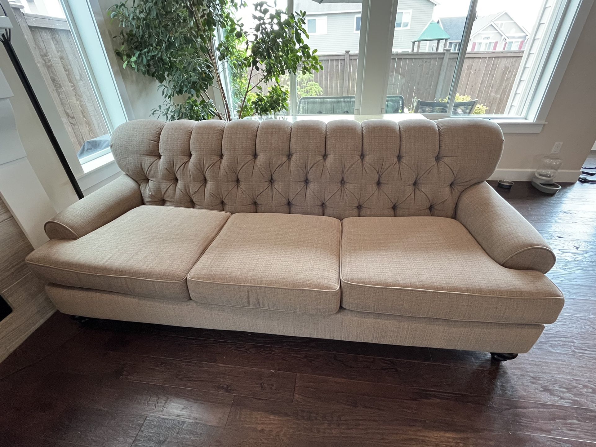 We bought this couch brand new. It’s a great neutral color, no wear/tear/stain or damage. Paid over $2500 plus shipping. We live North Bothell near Tambark Creek Park. If add is up, it’s still available. Serious inquiries only, please. Measurements for the couch: 8Foot Large x 40in Wide X 35 H. Love seat: 70 large X 40”W X 35H We hardly used this couch as we have another couch on TV room where we seat the most. Main reason to sell is to replace with leather couch and couple chairs for a more intimate seating area