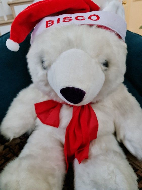 This giant 'Bisco' plush Christmas bear measures 24in tall sitting $35. Or, a set of 3 for $40! Exact cash and pick up only.
