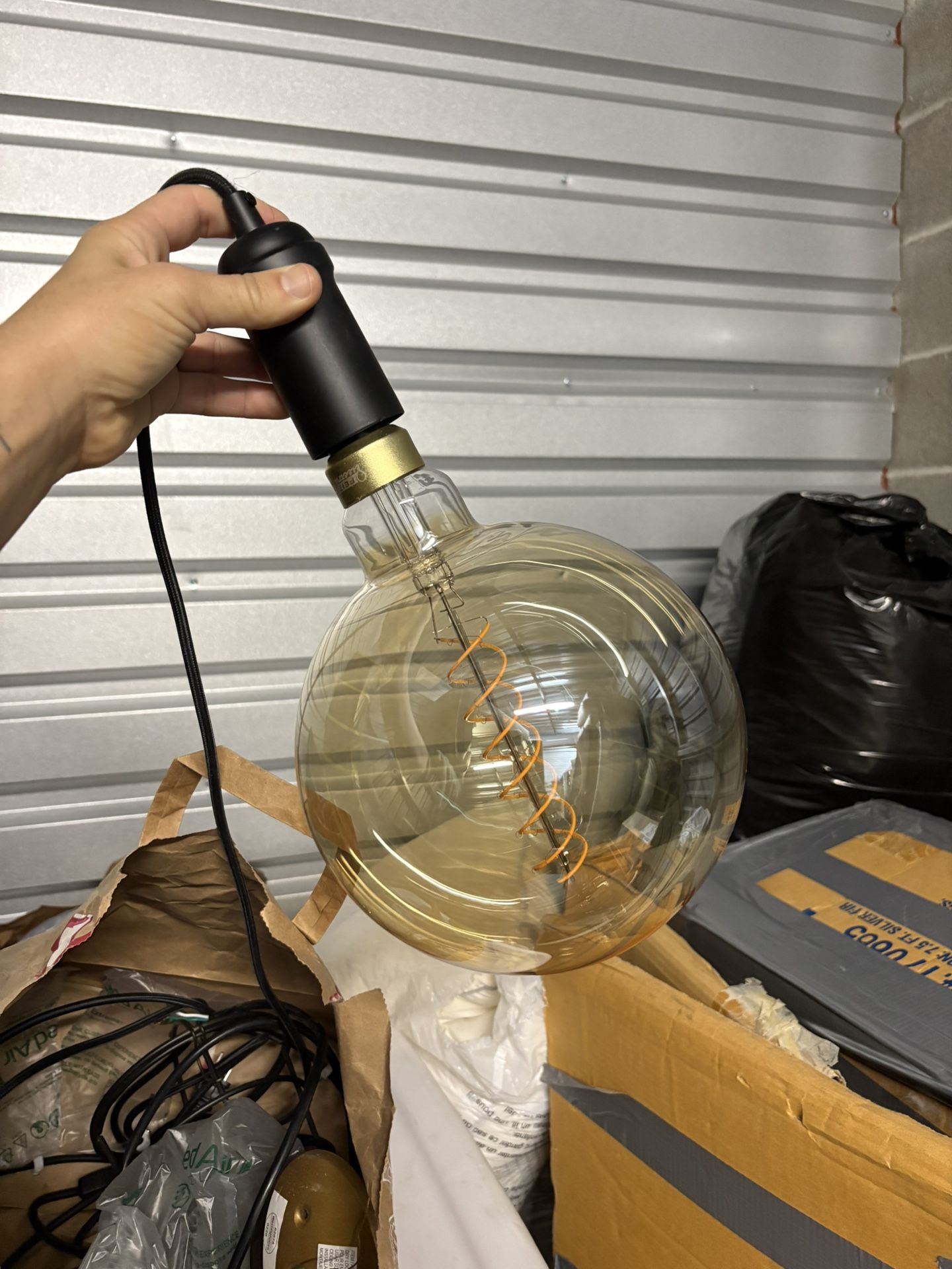 2 lights -1 massive vintage bulb (plug in) -1 light cage (no bulb) (wire in) Great for hanging wherever you need light and a little style π