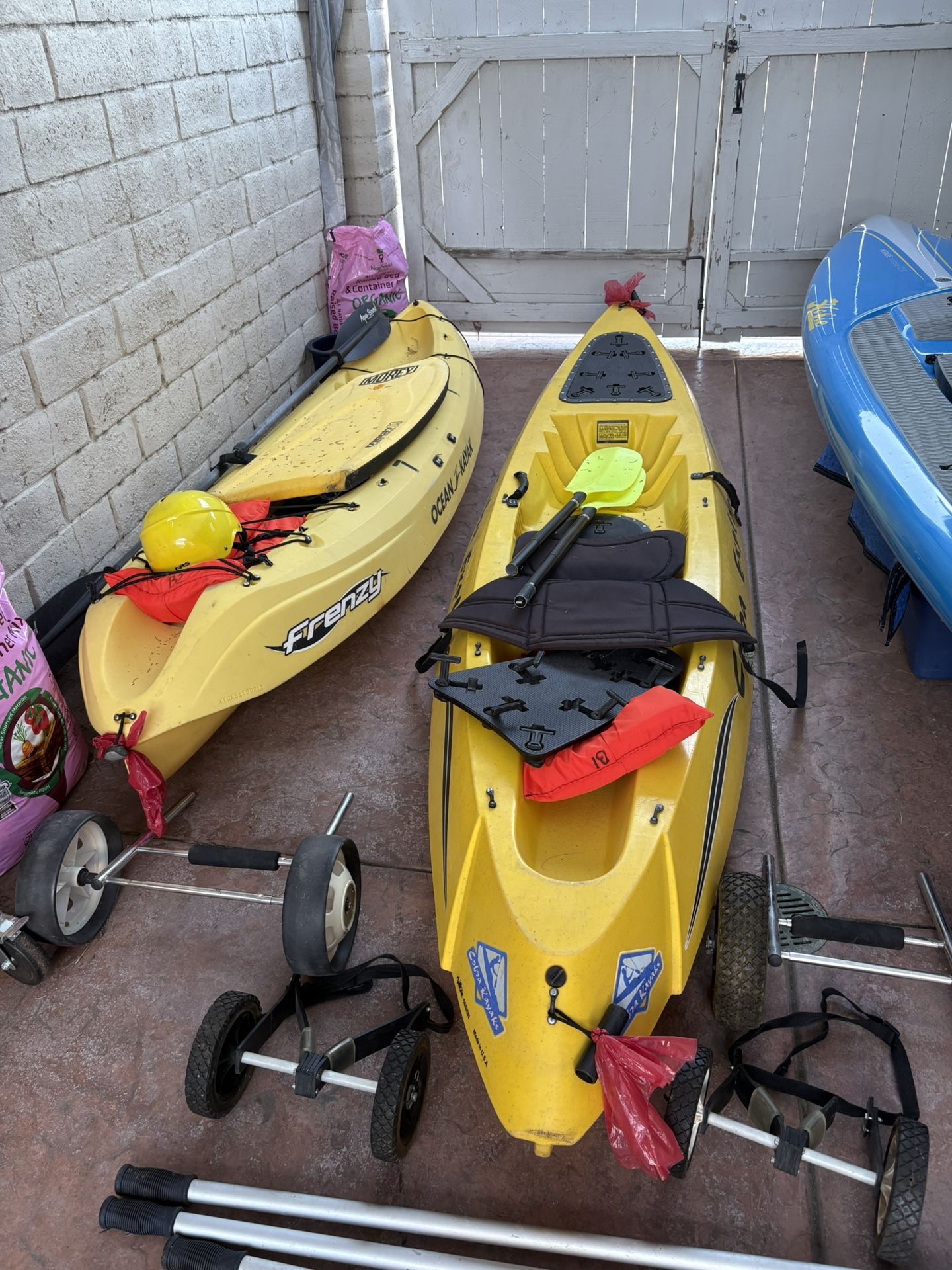 Ocean Kayak frenzy with seat and paddle,life jacket kayak cart. $145 Cobra Explorer with seat,paddle,pole holders,life jacket,kayak dolly. $250 Or take both for $360