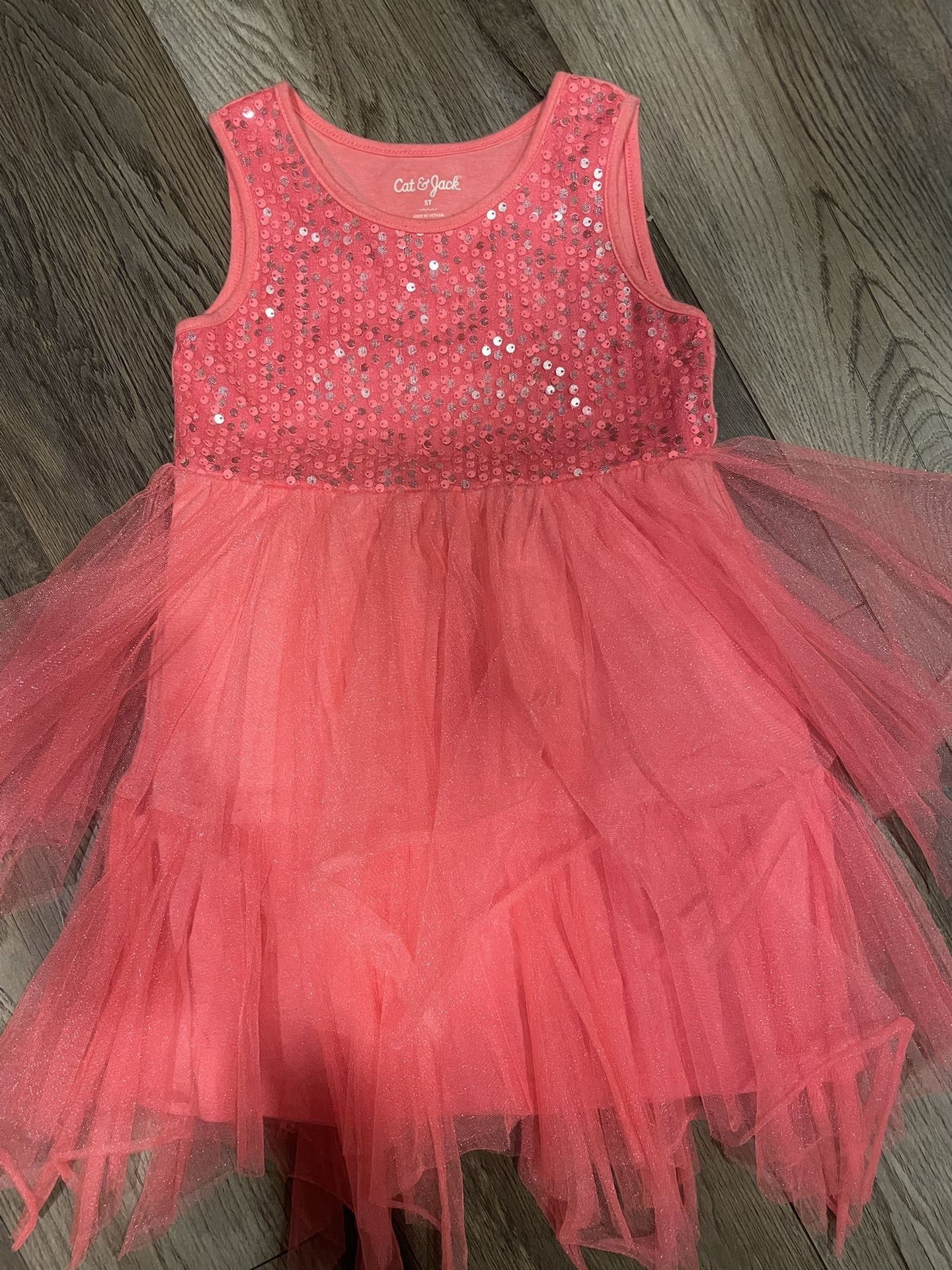 Girls Size 5 Cat & Jack Hot Pink Sequin And Tulle Dress Excellent Condition Make An Offer