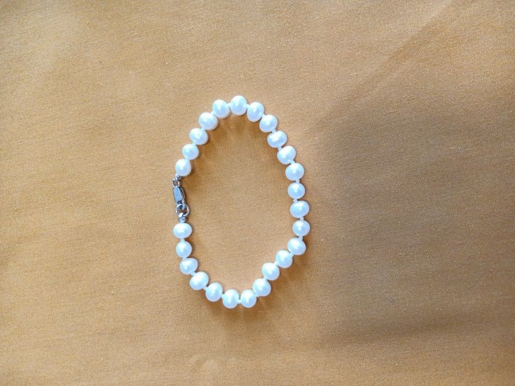 8 inch Pearl Bracelet with Sterling Silver Clap.