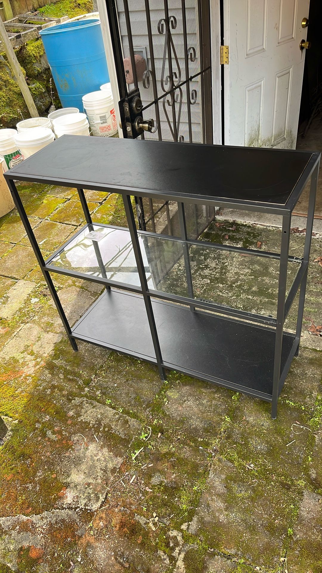 Shelf unit, black-brown/glass, 39 3/8x36 5/8 "
