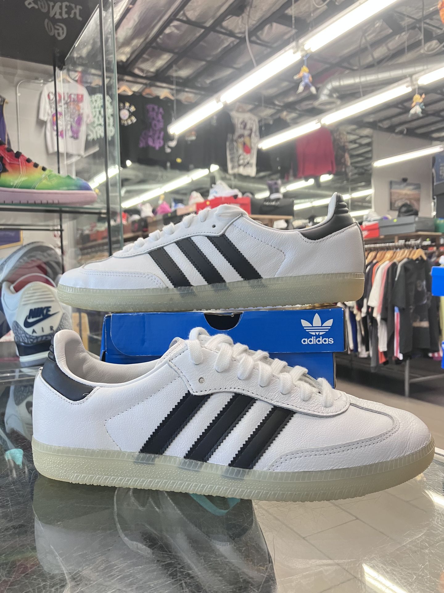 Adidas Samba Jason Dill White Black. Size 9. Good pre-owned condition. No major or significant wear. $38 + tax. Pickup in Culver City.
