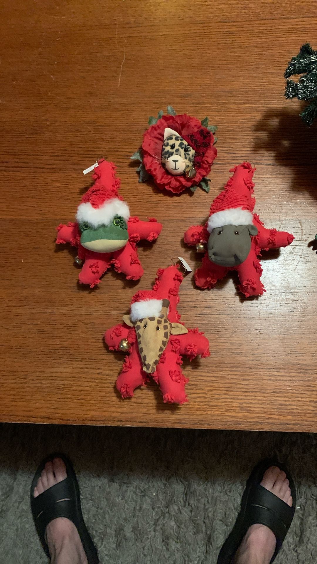 Animal ornaments on a red star for sale. Giraffe, hippo, frog and a cat are the characters. This is a one of a kind item and if you combine them the price goes down. Perfect gift for the collector. Check out my other animals on my post. $5.00 cash 92120