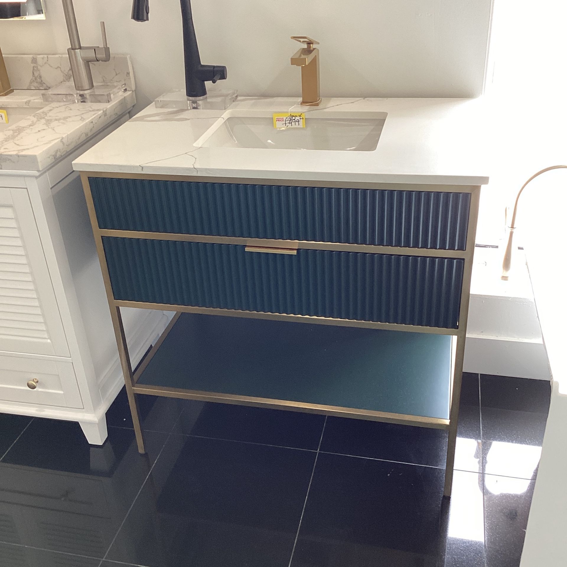 36” Modern Reeded Vanity With Quartz Top READY FOR PICKUP