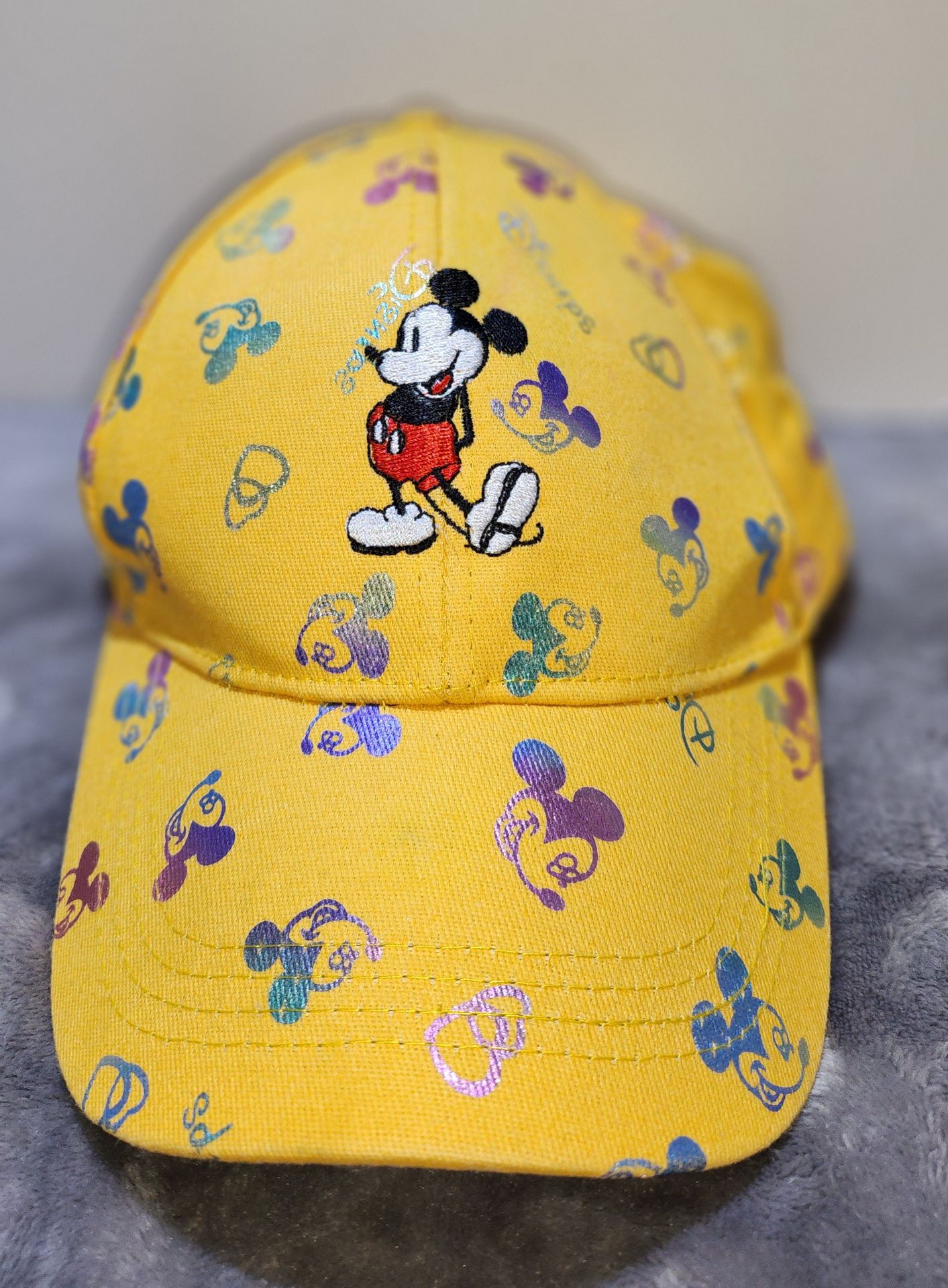 Disney Mickey Mouse Embroidered Yellow Adjustable Baseball Cap Holographic