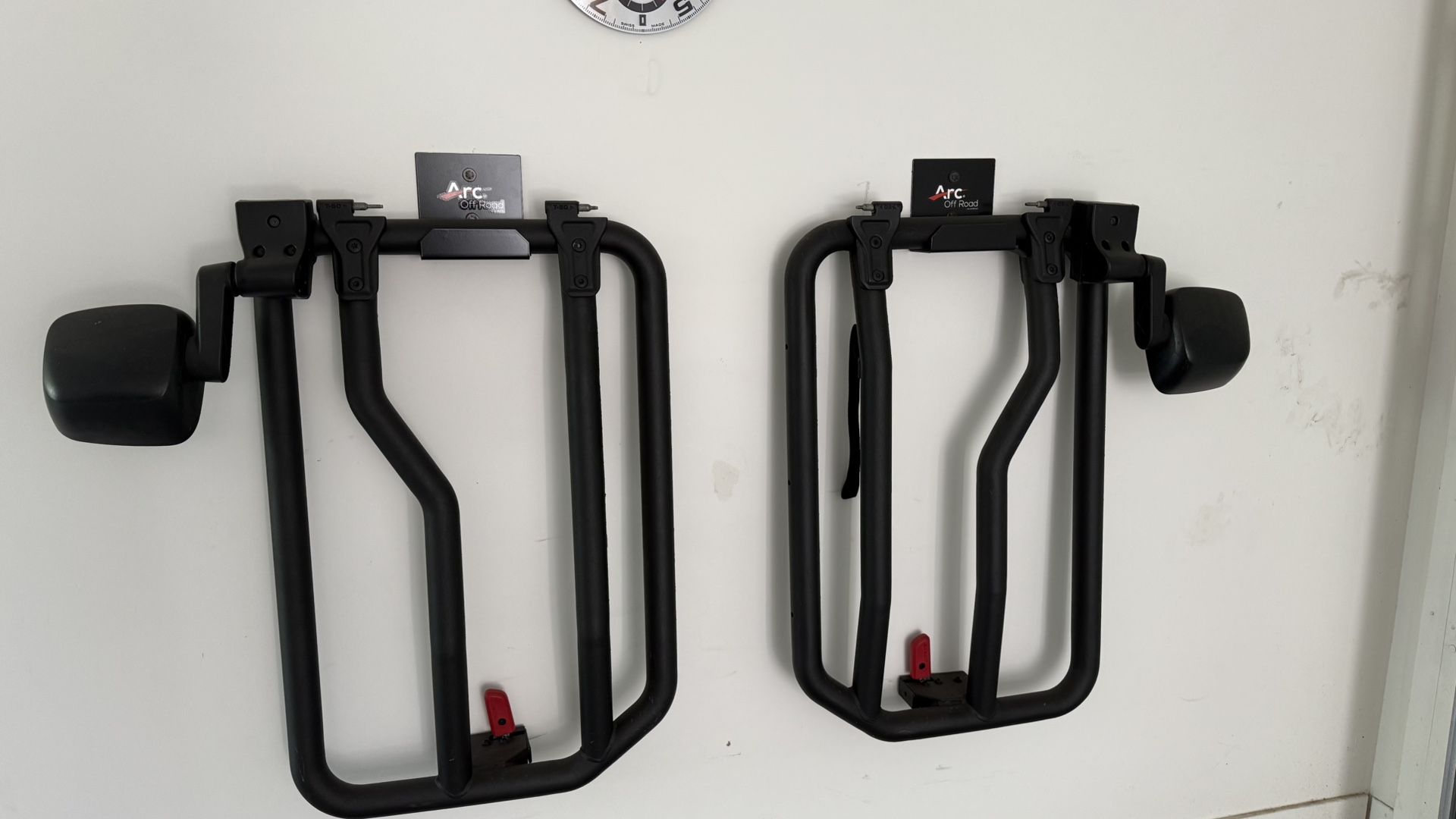 Mopar factory safari doors with mirrors included. Also includes pulley for roof. All 4 doors included. Used twice on 2020 Gladiator will fit all gladiators.
