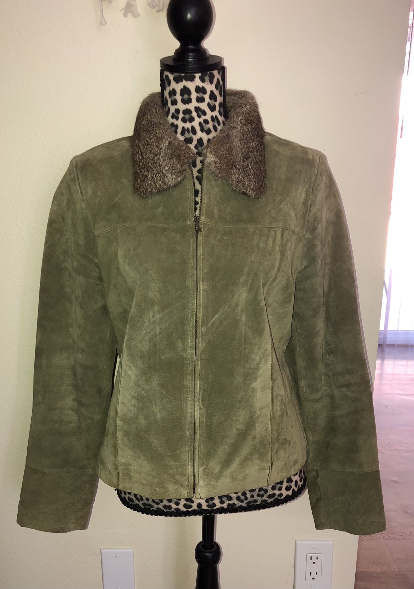 Uniform Olive Green Suede Leather Jacket