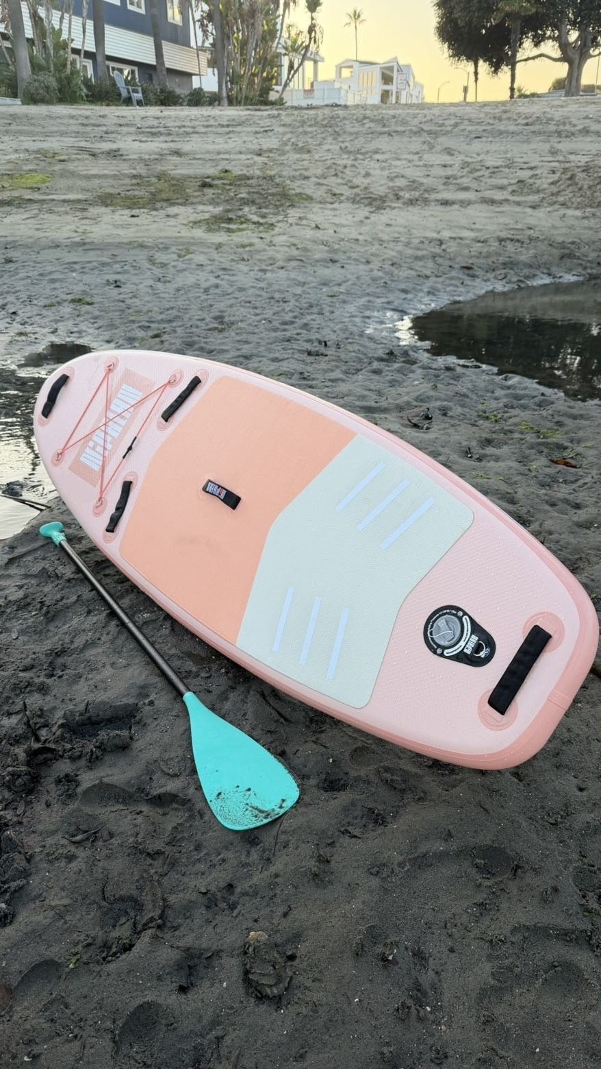 Used once and it’s really good for someone who would want to start paddle boarding. I weigh 240Lbs and it held me up amazingly. Comes with everything as shown in last photo Ask me questions if you have any