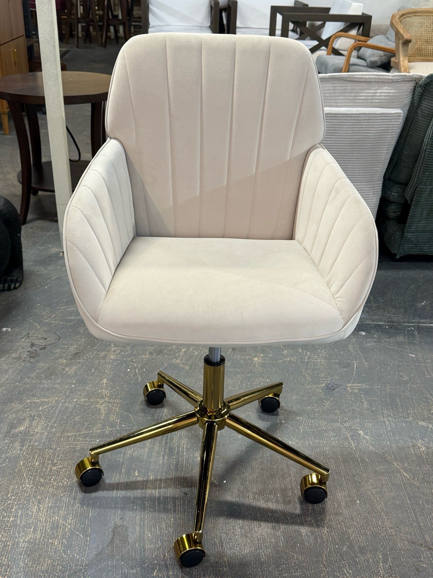 Office Chair with Adjustable Height, Modern Mid Back Soft Criss Cross Chair with Wheels Velvet Swivel Computer Home Task Chairs Ergonomic Executive Chair with Armrests(Beige) 💰60$