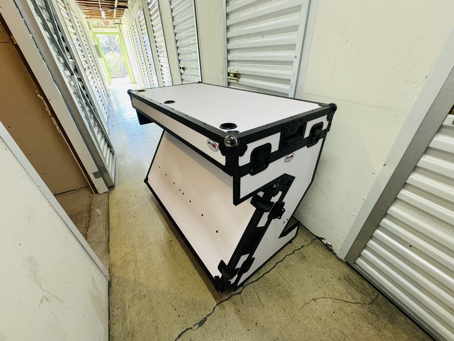 This limited edition white and black Z Table was bought and used for a tour and is no longer needed. Shows road wear, mostly on metal corners and edges. Introducing the ProX XS-ZTABLE WH DJ Z-Table® Workstation - the ultimate portable solution for DJs and live audio pros! Easily set up and collapse this sleek black and white flight case table. Its 48" x 25" surface provides ample space for your latest controller and gear, keeping everything within immediate reach. The table stands at the perfect height of 3ft and can support up to 200 lbs. evenly distributed. Thanks to its durable low-profile wheels, transporting the DJ Z-Table® is effortless. Crafted with industrial-strength materials, you can trust the quality you expect from ProX Cases. When it's time to hit the road, simply stow the Z legs inside the case, reducing its dimensions (folded) to 48 x 25 x 10 inches for easy transport. Built with Honeycomb Digital™ Protective Finish on Gig Ready™ Laminated 3/8" plywood, this ProX ATA 300 Case looks sleek with its hexagon grid design and provides excellent protection against minor scratches. Inspired by the ruggedness of New York City Street Manhole covers, this case can handle rough and tough everyday use. Rest assured, all ProX cases are precision-built using CNC technology, maintaining the high-quality standards they've been known for since 1984. Features: Limited Edition Black/White Finish ATA-300 Style Flight/Road Case Construction Easy Locking Fit Aluminum Tongue and Groove ProX Branded Spring Action Recessed Handles ProX Heavy and Powerful Steel Ball Corners 2x Low Profile Durable Tough Rubber Wheels Dual Anchor Rivets Signature Honeycomb Digital™ Design on Laminated 3/8" Plywood ProX Branded Industrial Recessed Butterfly Twist-lock Latches - Padlock Ready 36" high from the floor Tabletop is 48" Wide X 25" Deep Utility Shelf for Storage Adjustable Feet Exterior Dimensions & Weight 9.50"H x 24.50"W x 47.50"L - Weight: 65.00 lbs