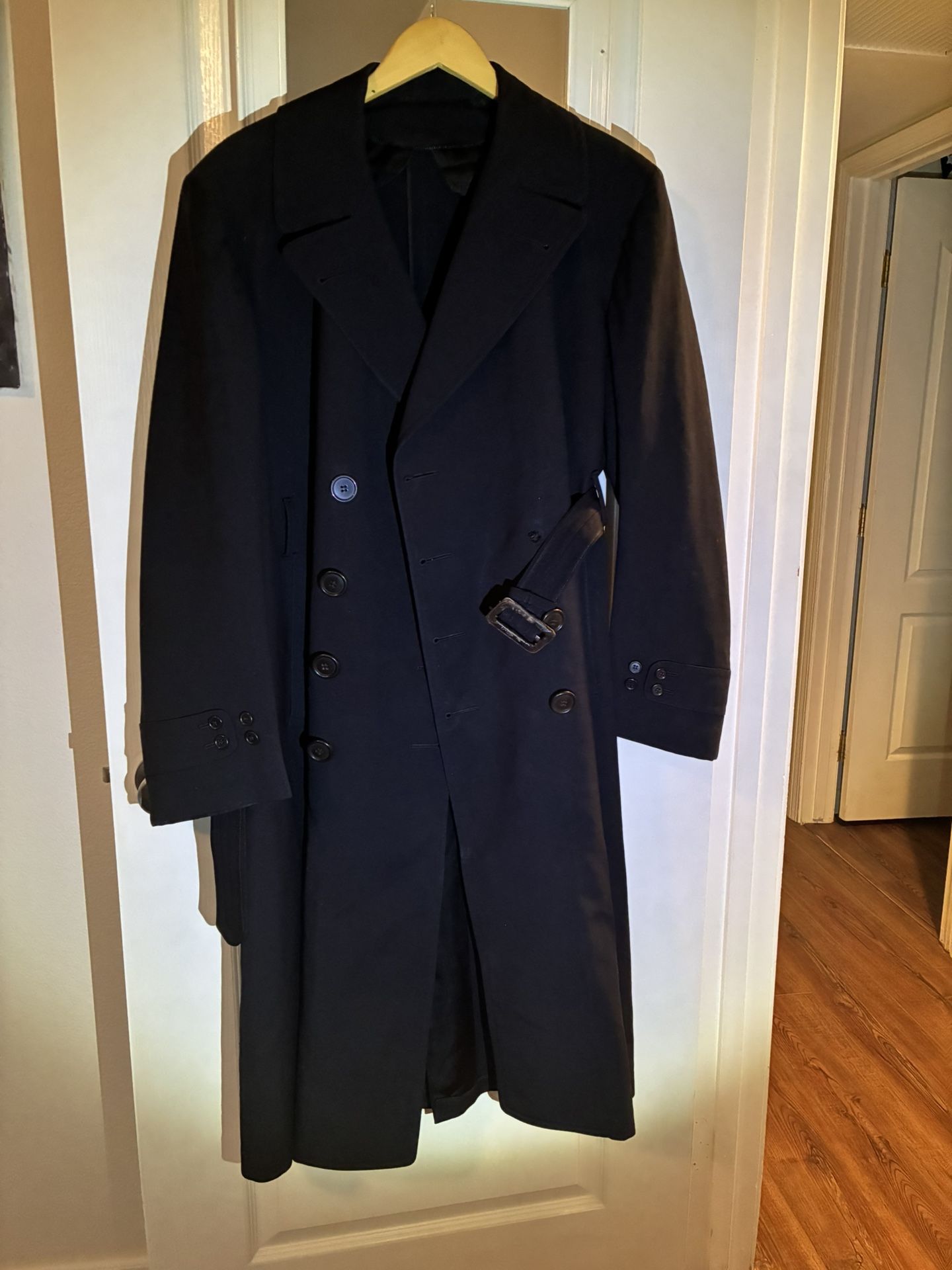 Size Lg made of a polyester blend. Does not have the inner lining and is missing a button and very good condition. Located on Herndon and Polk.