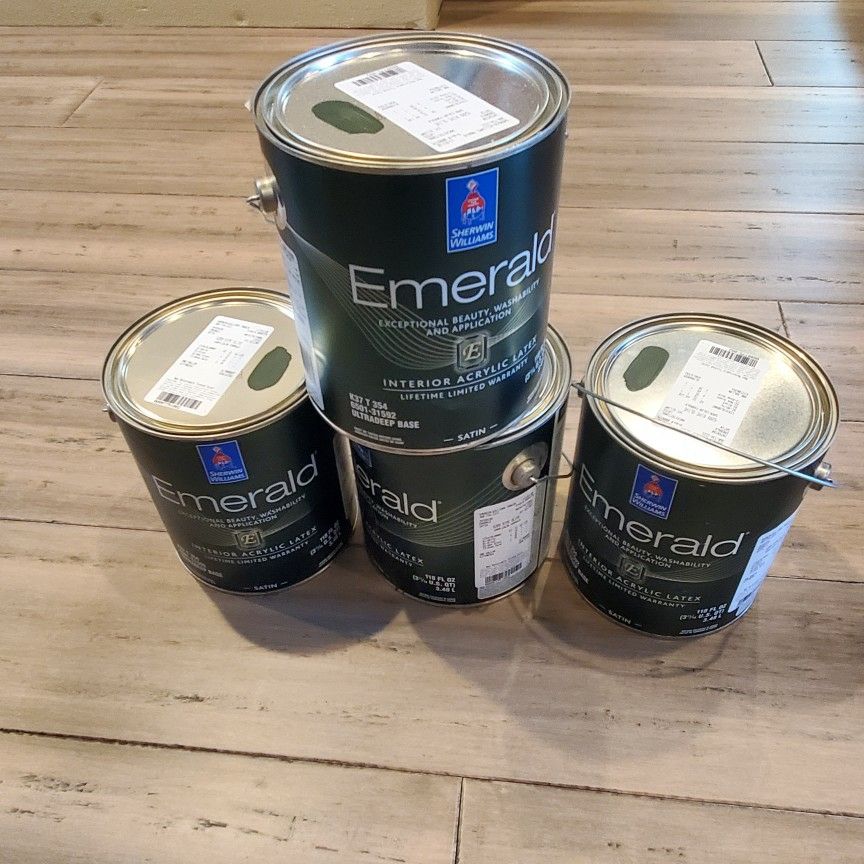 Color Ripe Olive satin finish purchased 12/3/20 Top of the line Emerald line from sherwin williams Beautiful color Interior paint Asking $30 pergallon Retails for $100 per gallon