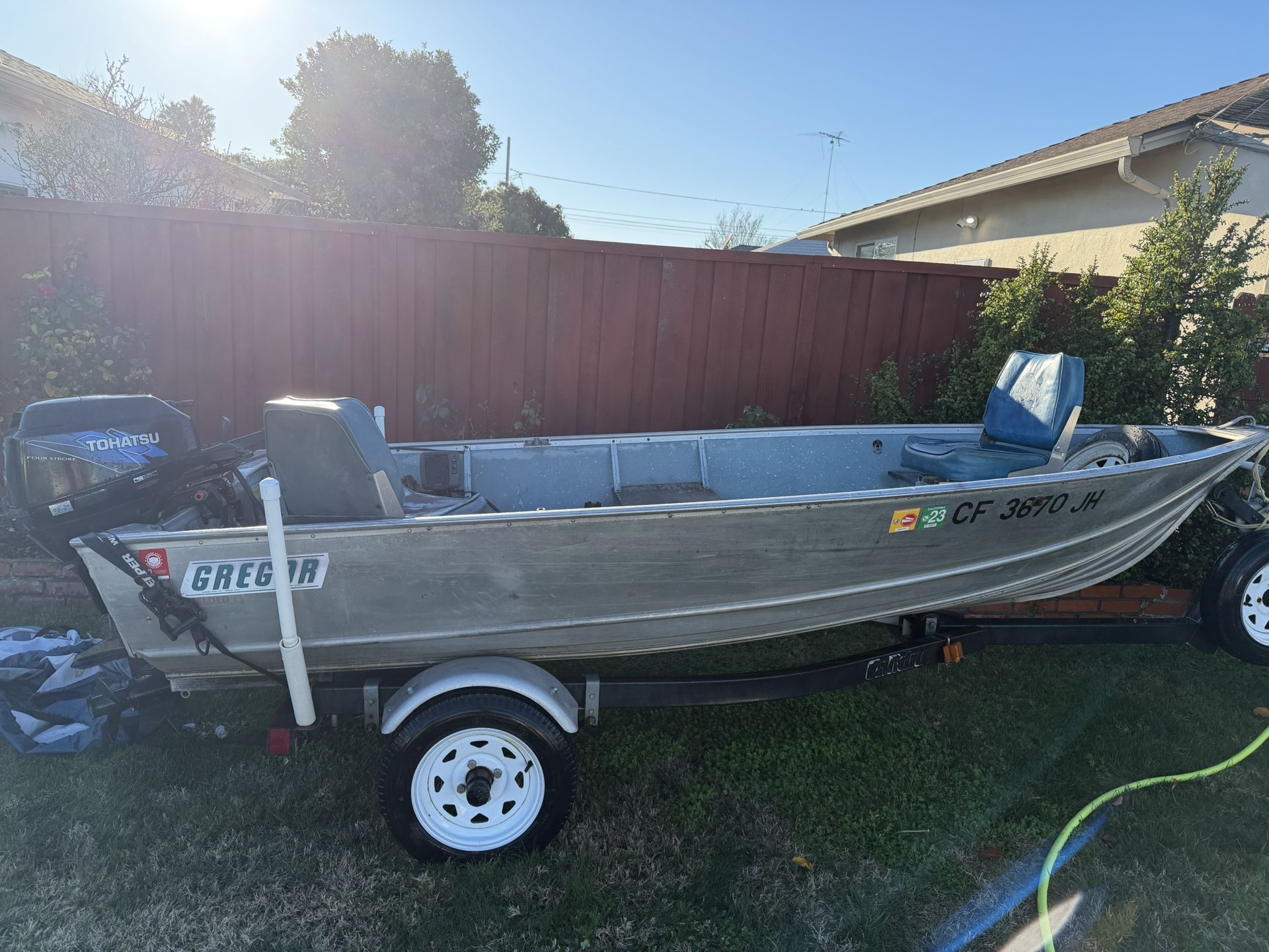 1986 Gregor 12’ Aluminum Boat W/Trailer and Motor