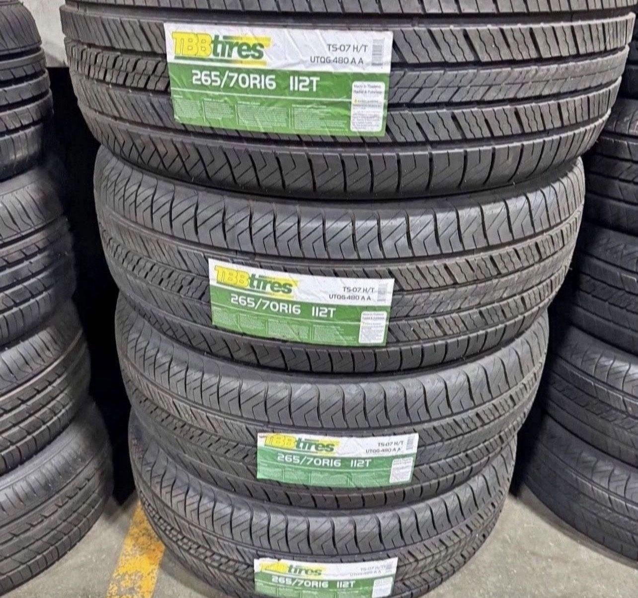 I also have this size in all terrain too. I sell new tires all sizes. I also have this size in all terrain. I’m located in Pasadena, I don’t install No hacemos instalación, precio es por los 4, estoy en Pasadena 265 70 16 265/70/16