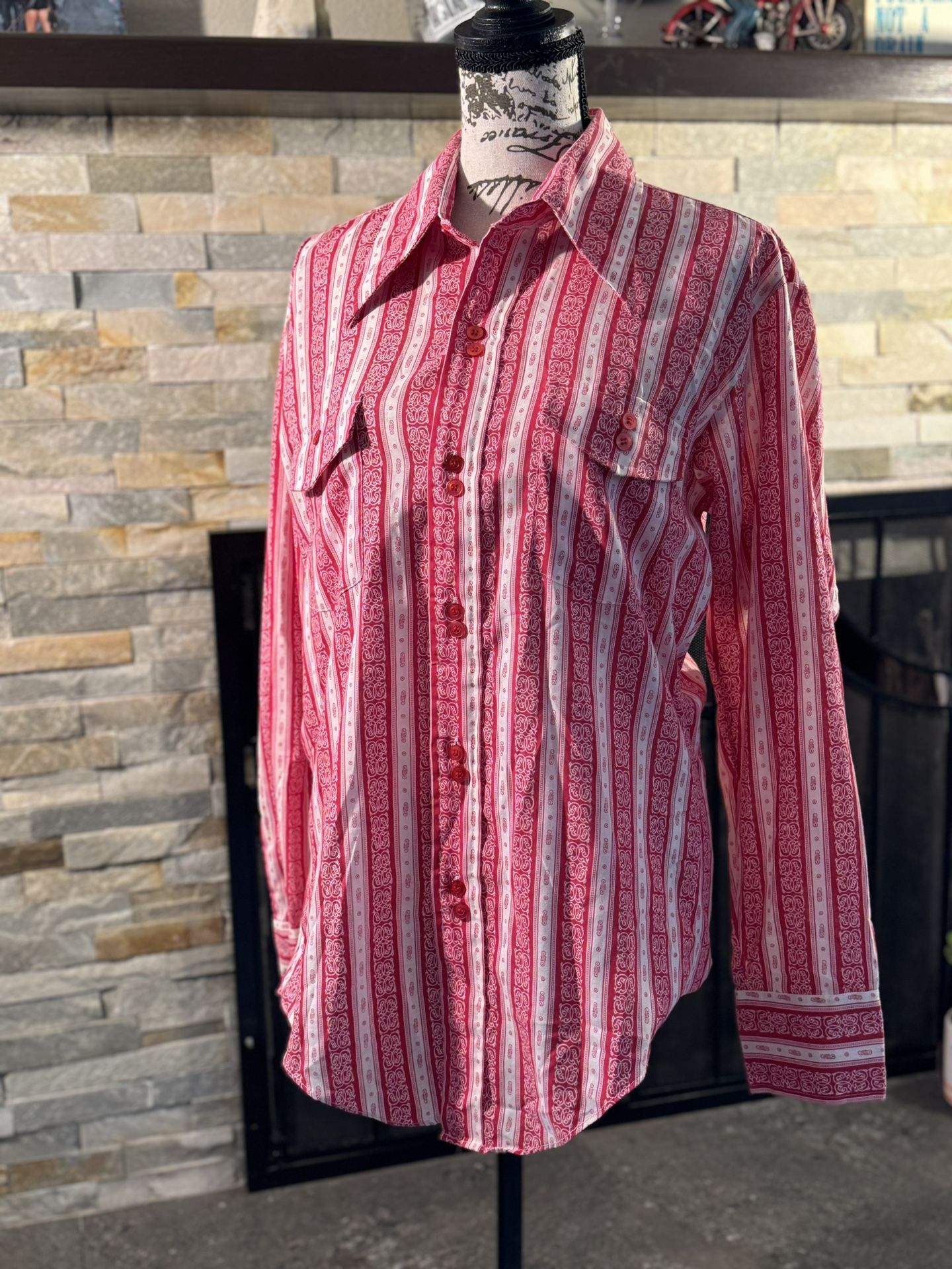 Men’s Med 15-15 1/2 Mr. Van Dyke red/white Paisley long sleeve button-down Shirt, vintage/disco look. Like new! #vintage #paisley #red #white #mrvandy