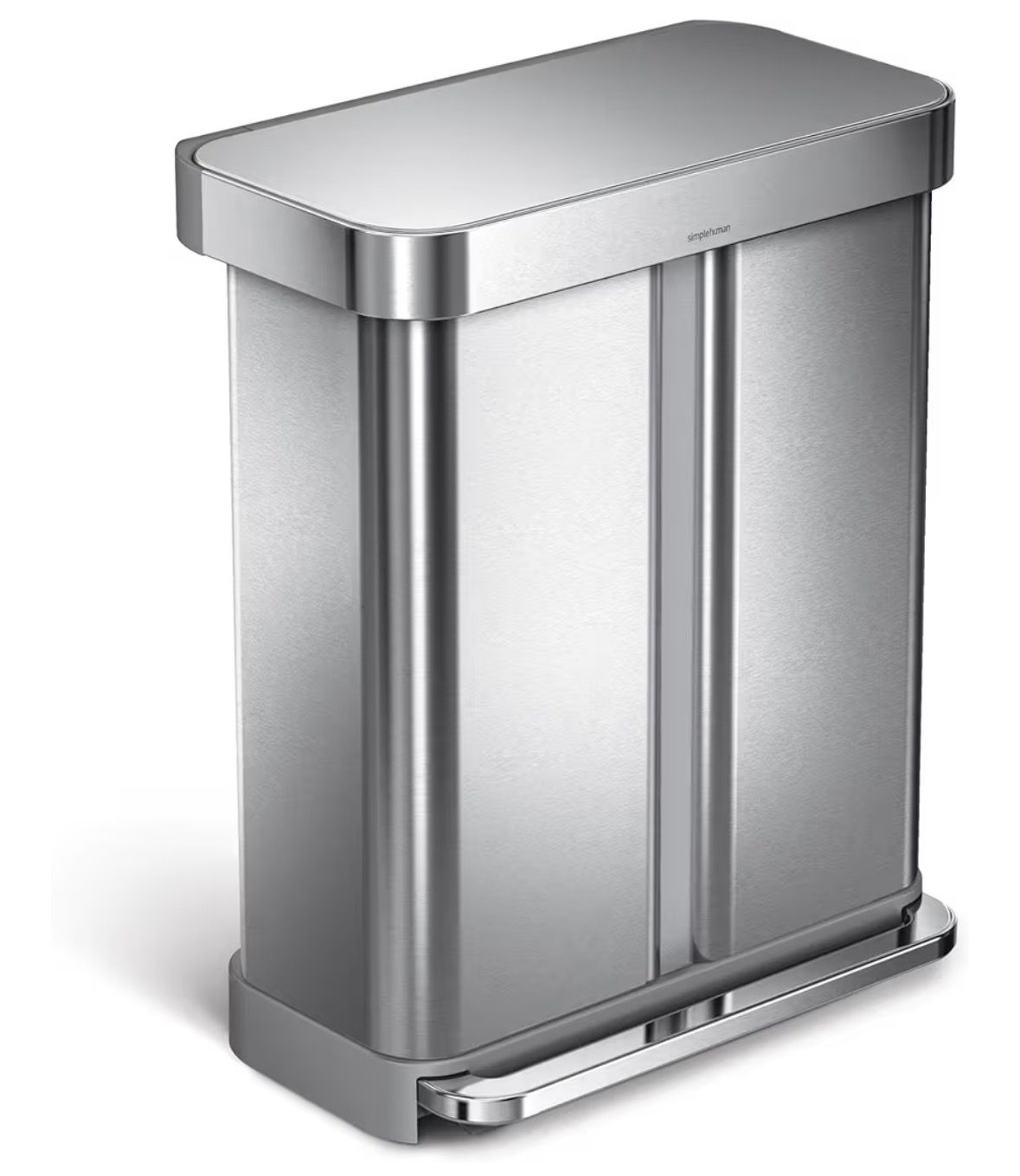 simplehuman 58 Liter/15.3 Gallon Step Can Liner Pocket, Brushed Stainless Steel Dual Compartment Recycler