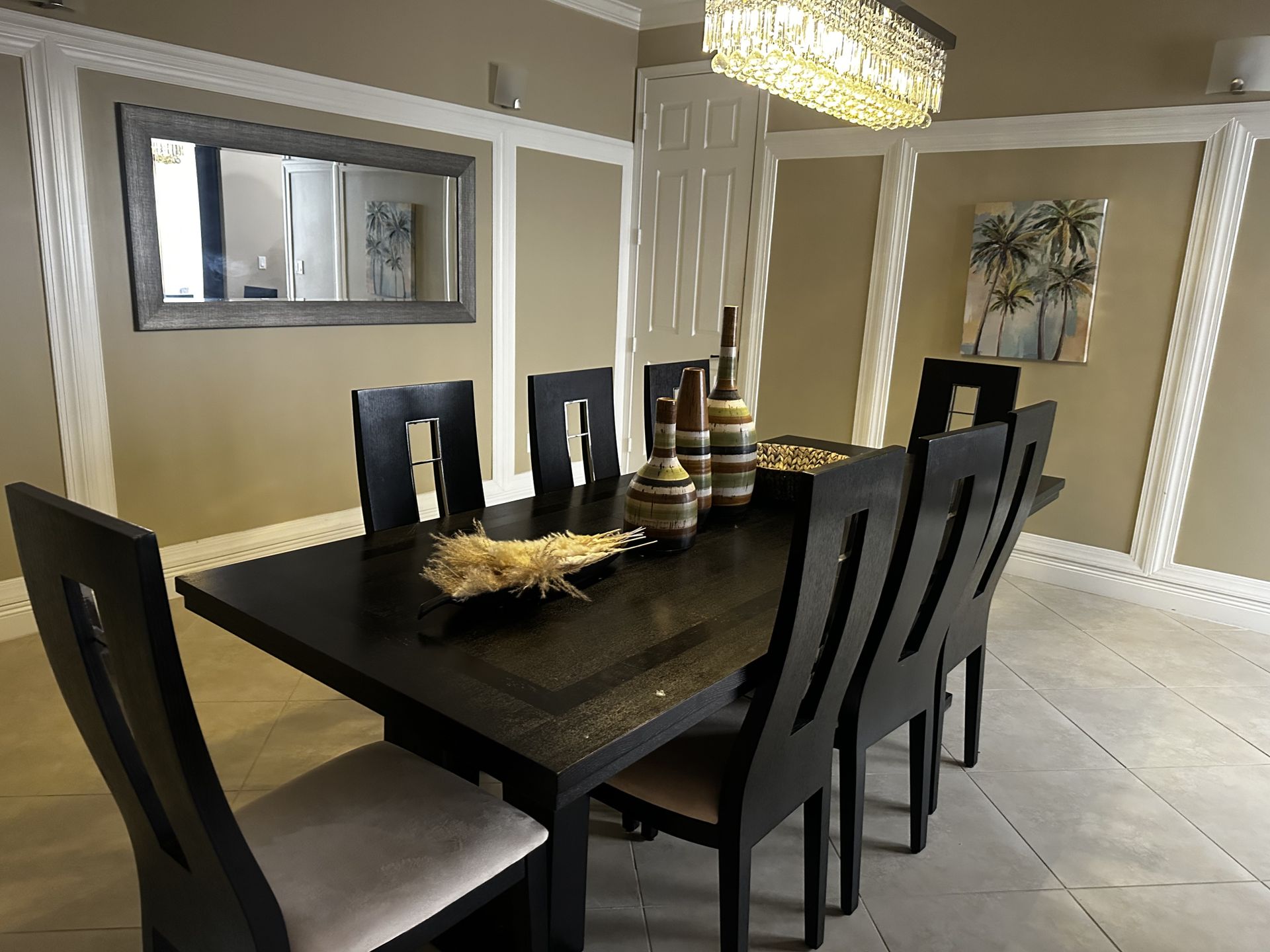 Black dining room table and 8 chair set